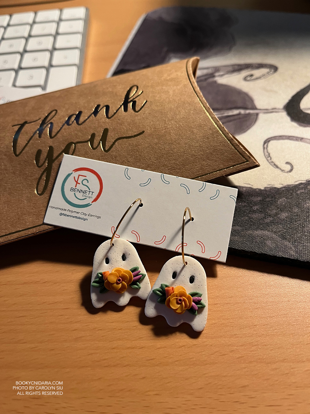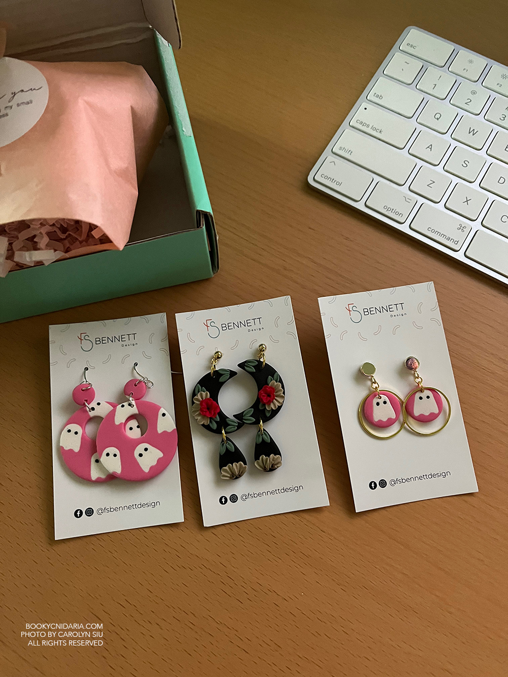 I ordered the ghosts first, then immediately ordered three more pairs of earrings. These are all made of polymer clay, and are very lightweight and pleasant to wear. They’re so cute that they are actually motivating me to start changing out my earrings again, which I’ve been too lazy to do for years. I was so excited when I saw the pink ghost donut earrings: I had seen them earlier on Instagram but thought they were sold out when I couldn’t find them in the shop, but then I checked back one day and they were there. All earrings came from FSBennett on Etsy. I love her work, and I will be back.