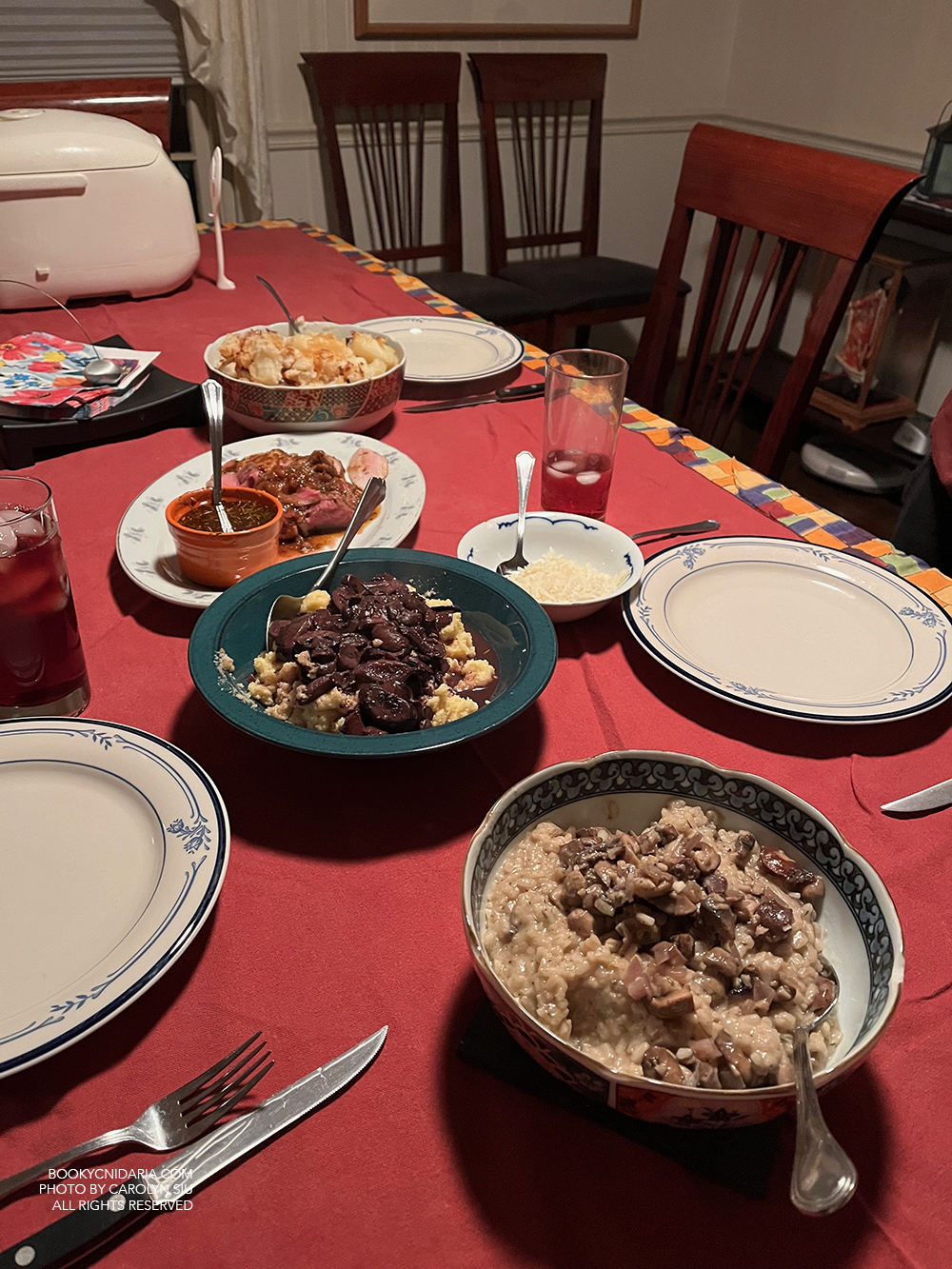 Holidays mean good eating in my family’s house, so we did our usual family cooking session, which my mom claims is akin to the Keystone Cops. I mean, we’re at least more competent than that. I have never in my life had risotto turn out this well, thank you Damn Delicious. This recipe is definitely a keeper, as is the sweet-and-spicy apricot pork, which was so good that I had to show it twice for full appreciation purposes. Bonus: the leftover pork makes a great sandwich. And, yes, those are the duck fat potatoes from Thanksgiving. I wasn’t joking when I said we were building our Christmas menu around those potatoes. This time I cooked the full five-pound bag. There were actually leftovers.