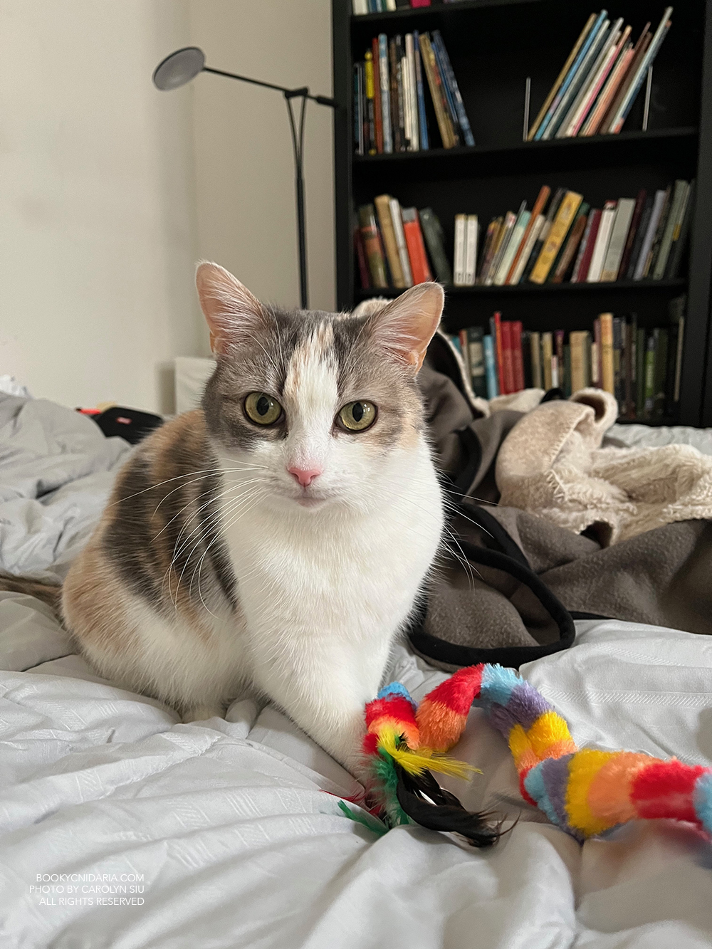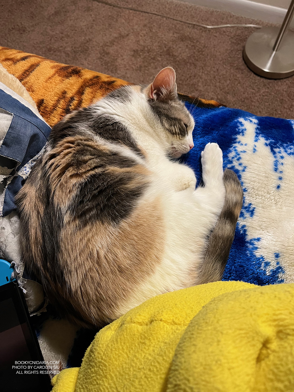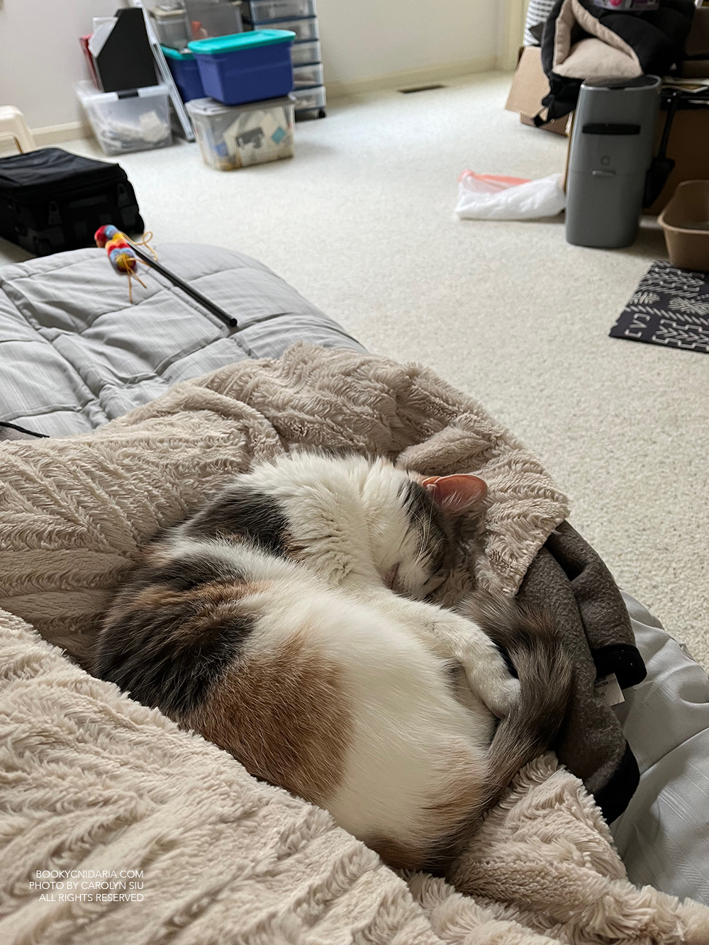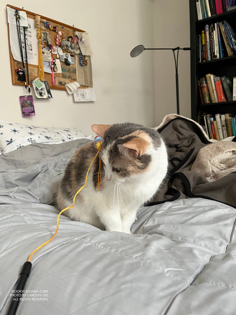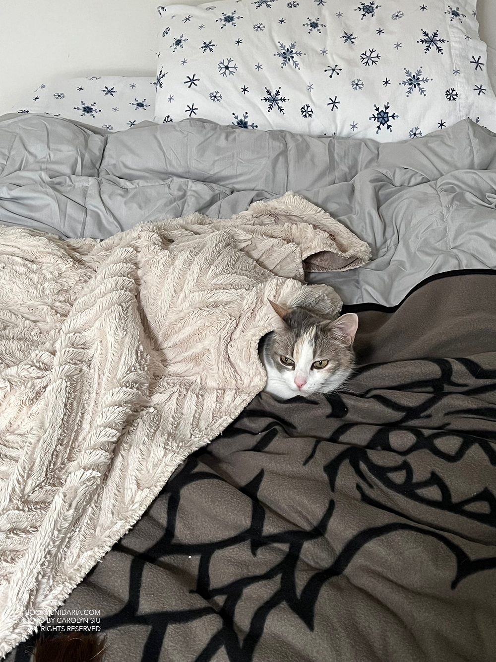 Last week I took my first winter holiday in years, and it was just lovely. (Unfortunately I did have to go back today. Womp, womp.) I really need to staycation more often. I could get up when I wanted (I mean, aside from having to get up in the mornings to feed the ear-clawing cat), change plans at the drop of a hat, bake brownies for no reason, play with the cat at odd moments, visit a new bookstore on a whim. It’s not that I can’t bake brownies on a work day, it’s just that I generally lack both the energy and the planning capacity to do so. Mostly I’m just happy that I was able to do my new year’s cleaning without having to take extra time off or push it back after the new year, the way I did at the end of 2021. I mean, look, I had a lot going on and I figured that a messy apartment wasn’t my most pressing problem. I am so sad that my vacation is over. It’s been a really good one, particularly with my little snooglebug hopping into my bed every night. She’s been sticking to my bed longer and longer, and I’m hoping there will come a time when she can spend the whole night snuggled against me. Right now she’s still reasonably independent, and also seems to overheat pretty quickly.