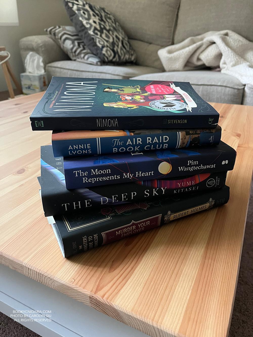 I was doing so well not buying books, and then I watched Nimona and I had to buy the graphic novel. Then while I was at the store I had to buy all these other books that said they wanted to come home with me and Nimona, and then the White Marsh Barnes & Noble reopened last week and that was the end of my book-buying ban, which to be frank I completely forgot about anyway. Anyway, I now have 15 new books and a box full of old books that got unceremoniously pulled off my very full shelves, and I am trying to find an unoccupied day to drive up to Pittsburgh to sell those old books. (Yes, it has to be Pittsburgh. Don’t ask me why. It sounds crazy even to me.)
