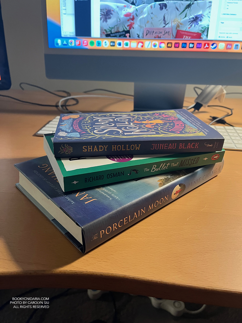 “Embarrassing” is realizing you forgot to take pictures of your final June haul and also put the books away too efficiently but you still remember what you bought, so you go and pull them off the bookcase literally so you can take a last-minute picture. What kind of half-assed blogger am I? This is why the third photo doesn’t look so hot. ;_;