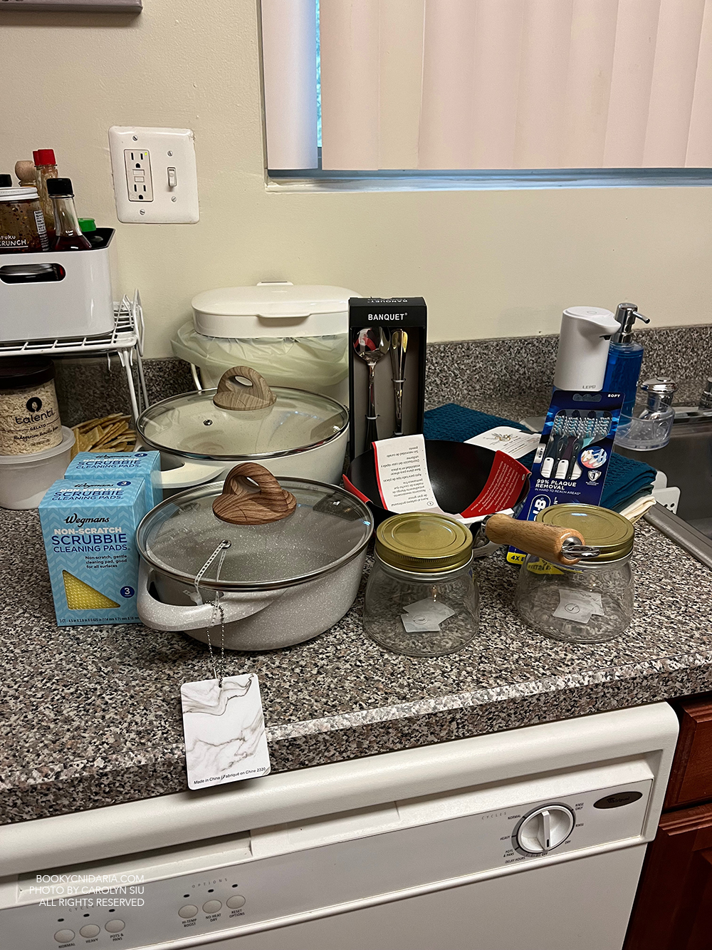 I wasn’t even planning to pick up the cooking pots, because I originally was going to go to Safeway when I cleaned the kitchen and realized I was out of dish sponges. En route I switched to Wegmans because I remembered that I also wanted to buy mason jars, and my Wegmans is right next door to Home Goods. Fast forward an hour or so, and I ended up with the jars, a carbon steel wok that I’m going to use to make chili oil, a small pot that I’m going to use as a one-person nabe, and a larger pot that I am currently justifying as my dedicated curry pot because it looked cozy and I have absolutely no self-control. (And I have the sponges. It wasn’t a total disgrace.) Long story short, I’m going to have to try to organize my pot cabinet. Again.