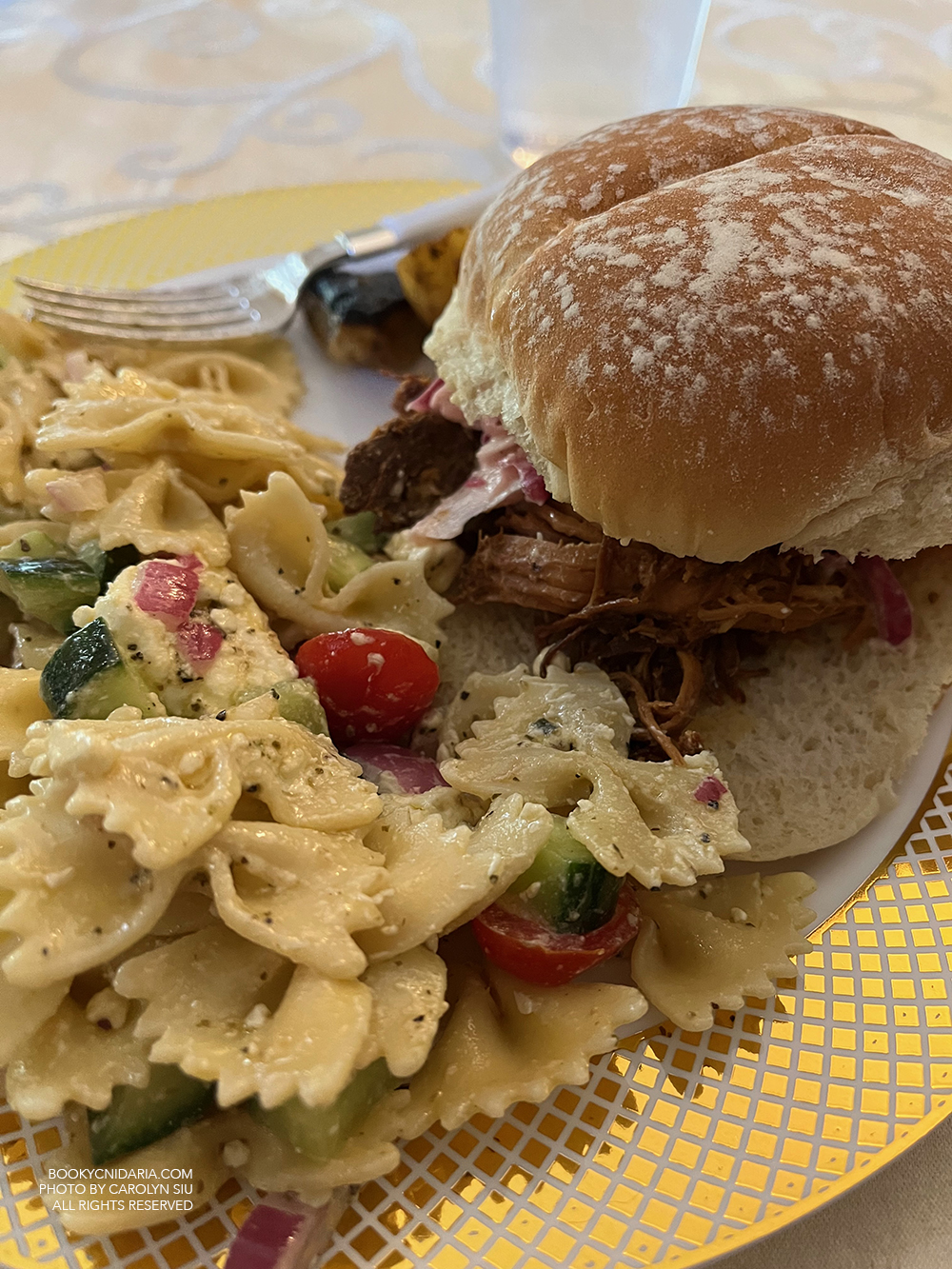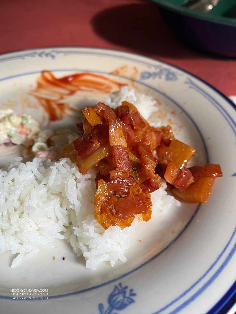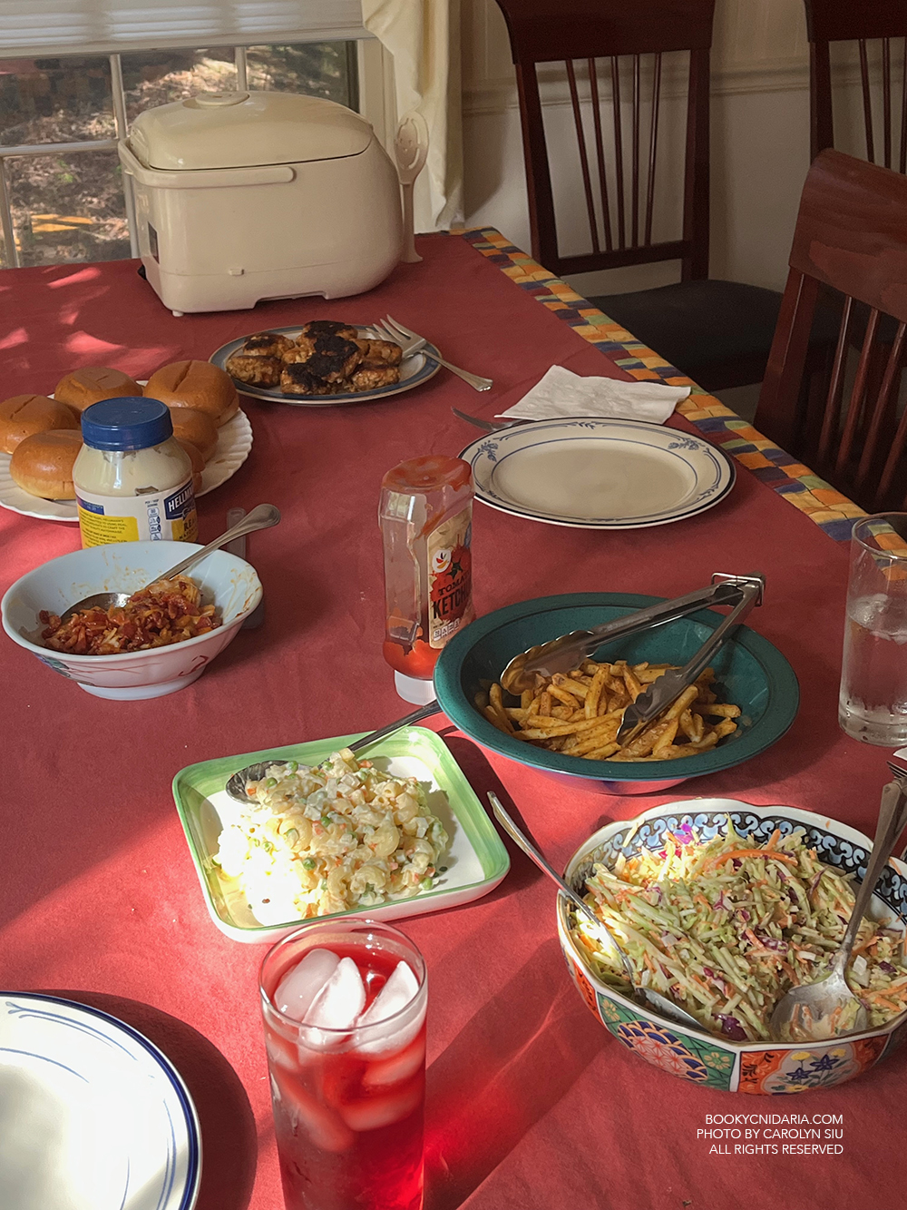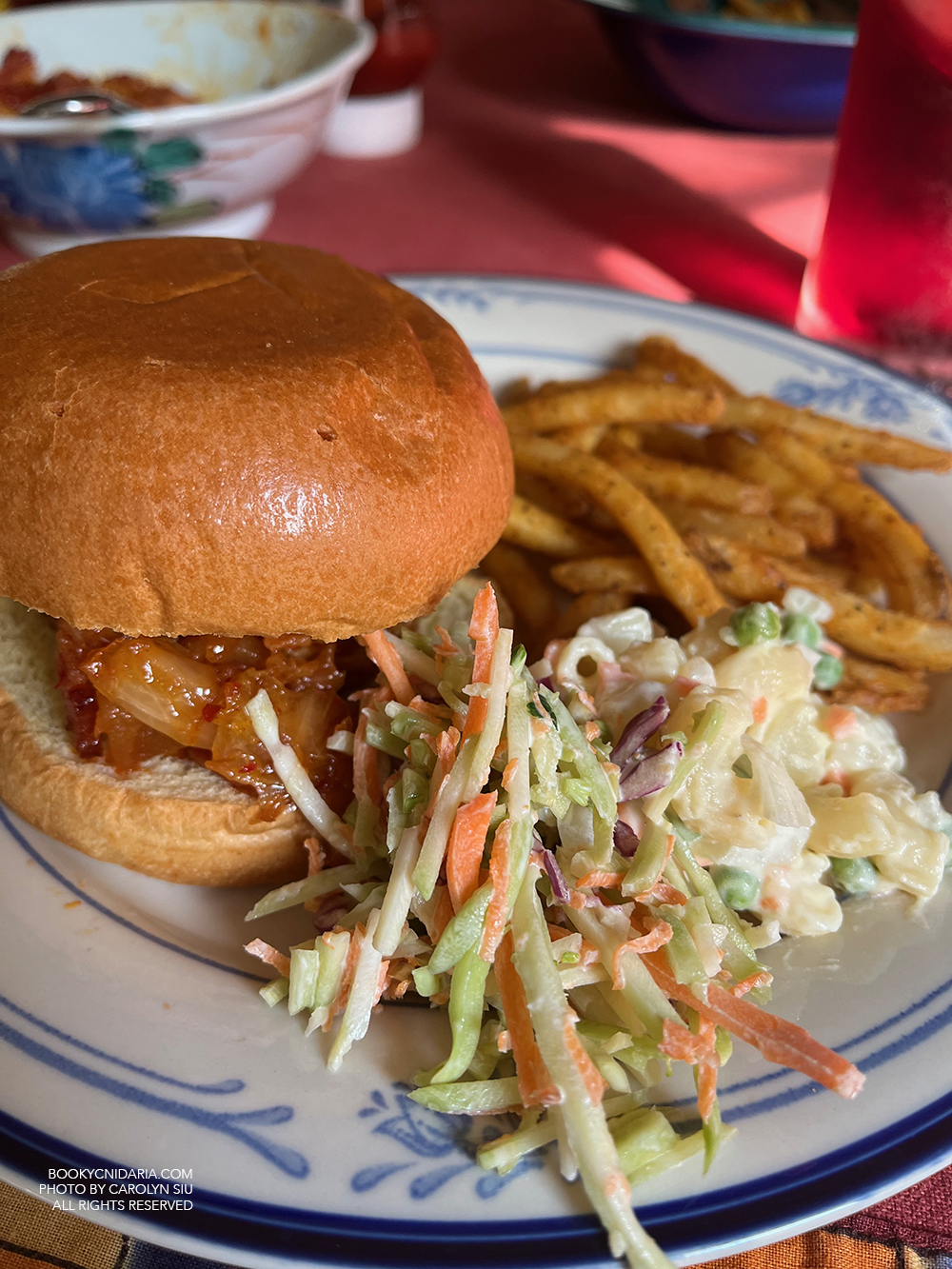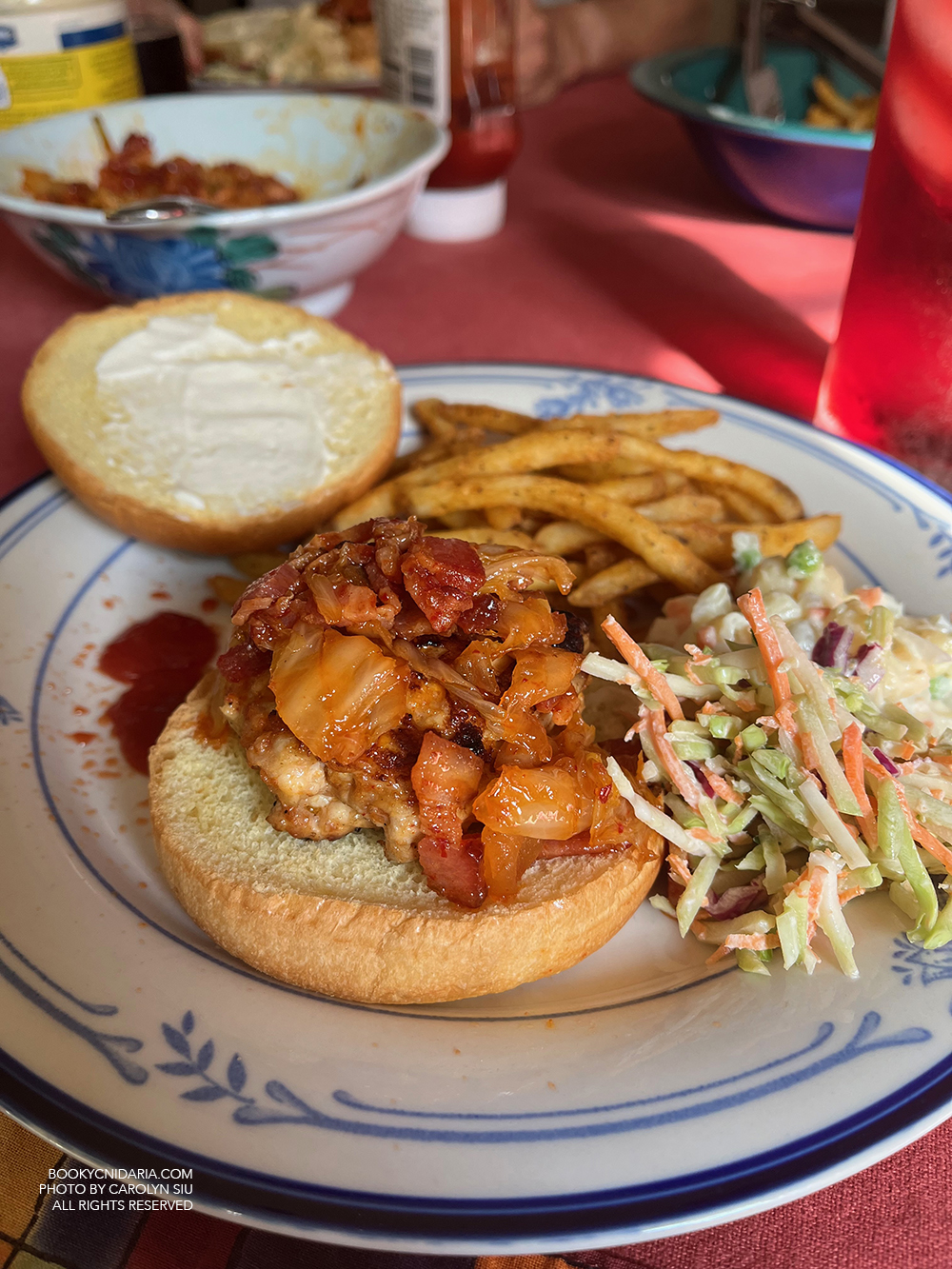 This year we celebrated Father’s Day with Pinch of Yum’s gochujang chicken burgers with kimchi bacon jam – not actually a jam, don’t be fooled by the name – served with Checkers fries, coleslaw, and of course rice, and since I got a massive craving for Hawaiian mac salad at the last minute (because of the pasta salad from the reading retreat) we had that as well. I am still kicking myself for not making a full recipe of the mac salad, which did not survive to the end of the dinner, because the portion I kept at home did not last me very long. The burgers were amazing, however, and the kimchi bacon was sheer perfection over rice. That recipe is definitely a keeper.