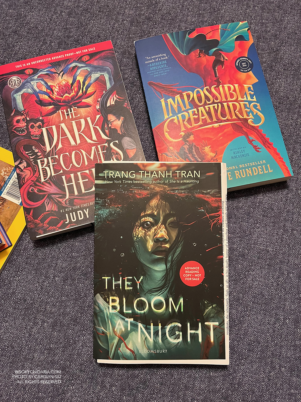I am not joking when I say I have been trying to get my hands on a copy of Immortal for months, because I am a Sue Lynn Tan stan even if a cursory glance has already told me that she still says “as” too much. Regardless, I really really really love the Celestial Kingdom series and I am mega excited for this particular ARC, and I grabbed it the minute I noticed it on the counter. I’m also very excited for They Bloom at Night, and for Impossible Creatures, which I have already bought in its final finished form. My intention was to read the free ARC so I could talk to customers about the book, but about five chapters in I knew I was going to buy it, and so I have. u_u