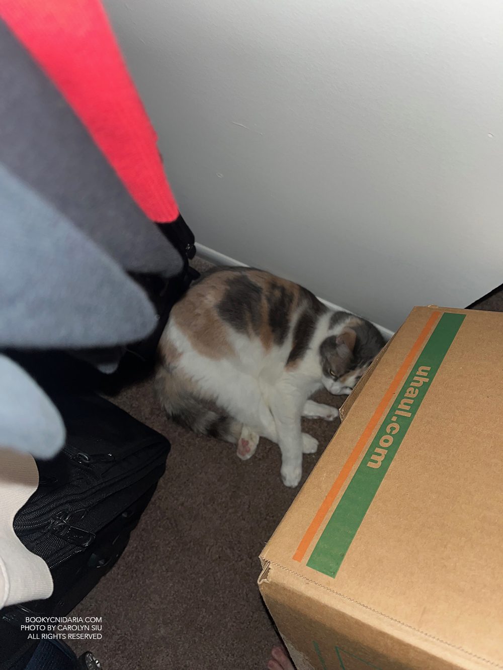 Here she is sleeping in the closet after I drugged her. I really just wanted her to stop biting her paws and thought she couldn’t make them bleed any worse if she took a nap.