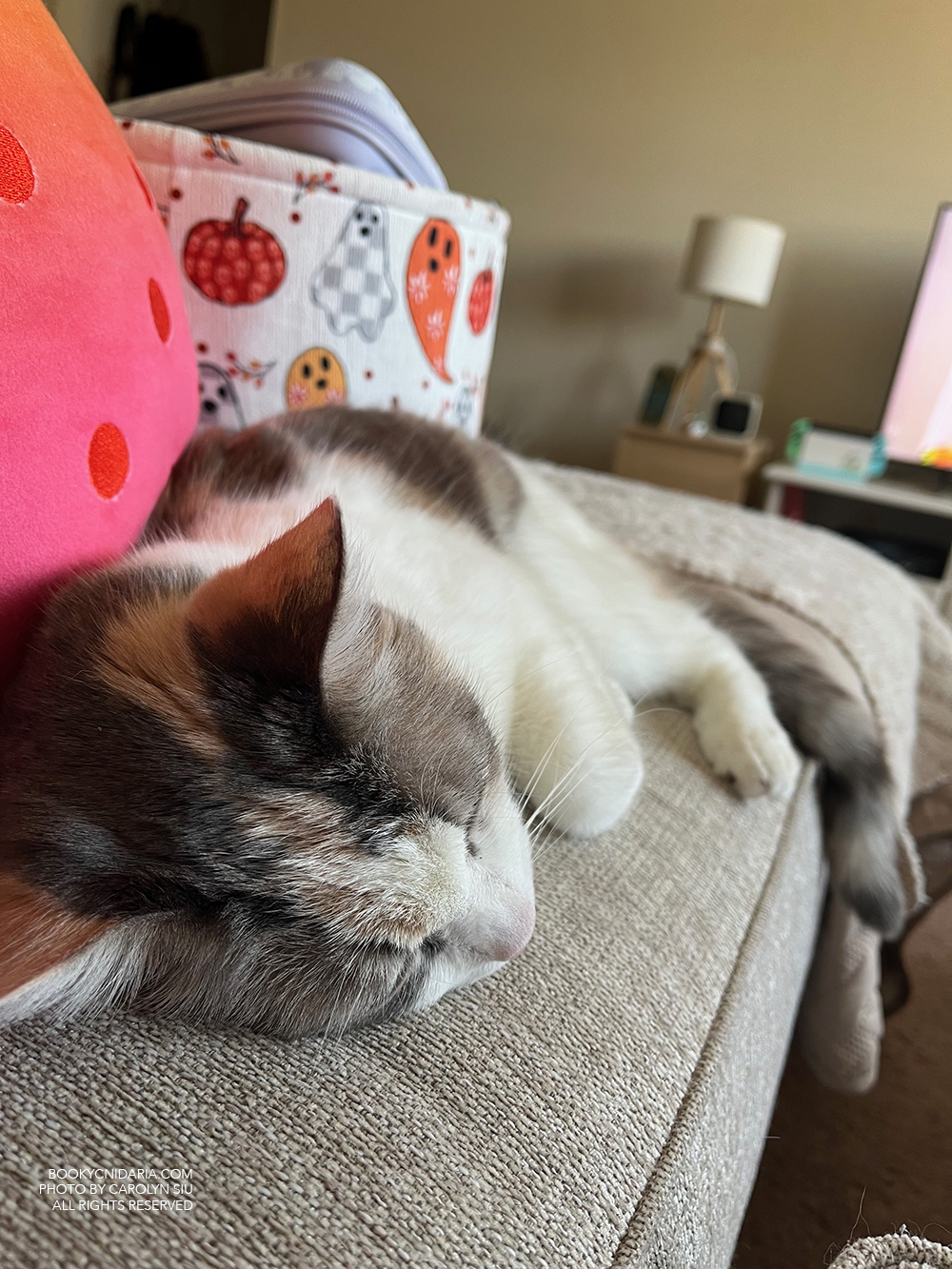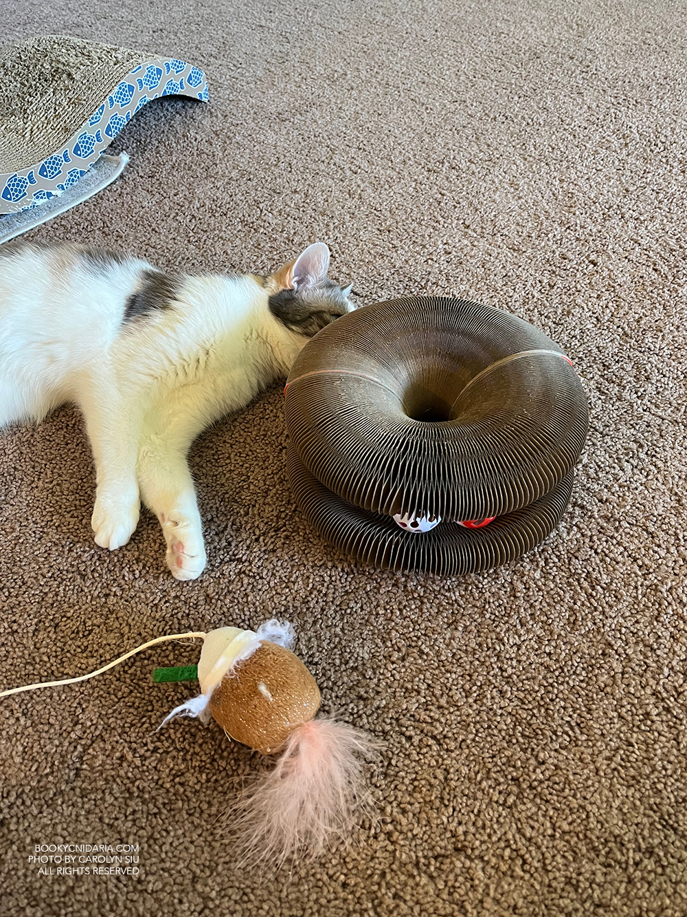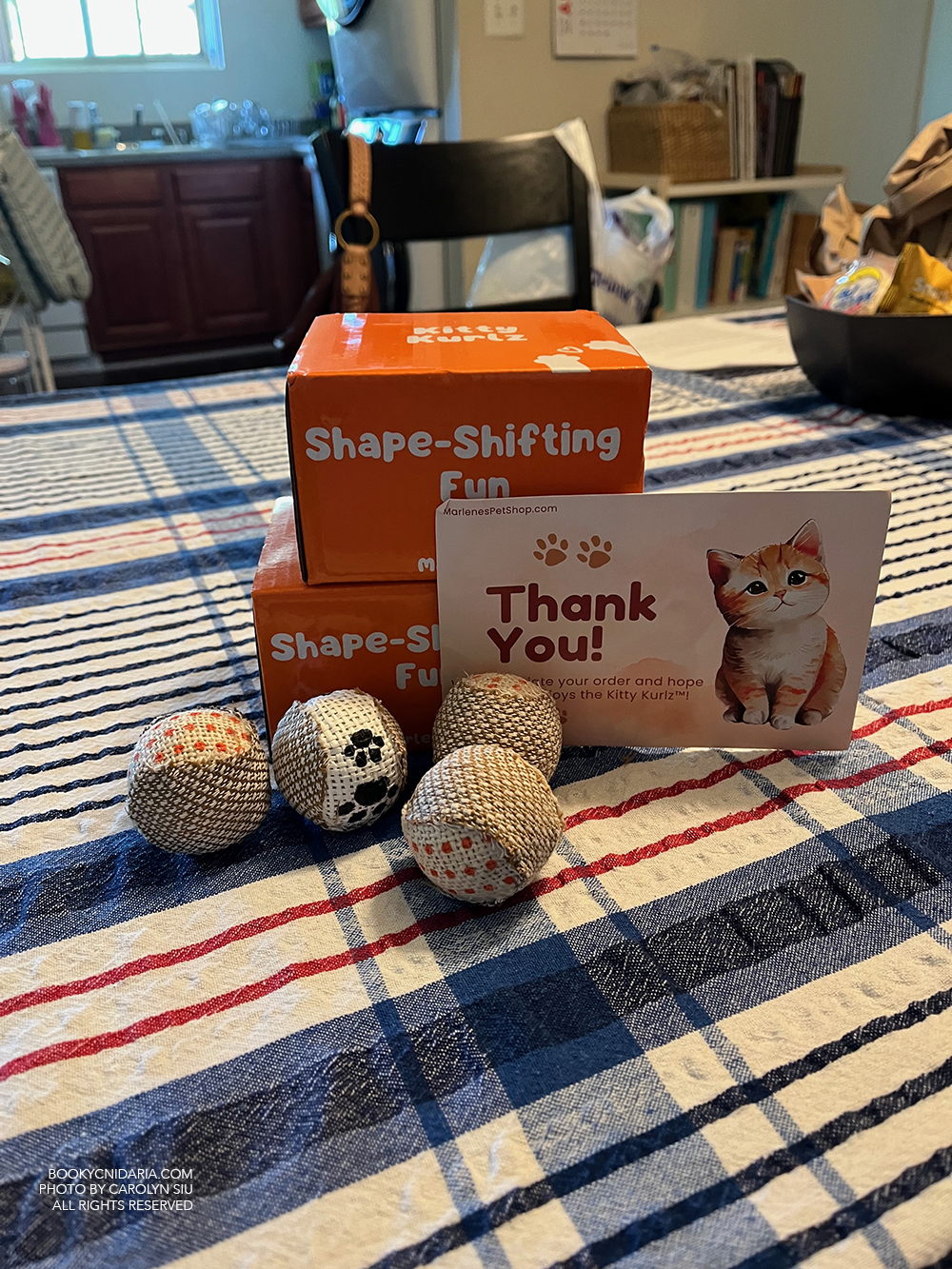 We love a cozy queen. This month I finally got suckered by the Kitty Kurlz videos and bought her a couple, which she has yet to play with. I’m hoping she’ll start playing with it the way the kitties in the video play with it if I leave it out long enough. I must say, I was expecting it to be significantly larger based on the Kurlz shown in the videos, but they might have linked several Kurlz together. They even offered me free shipping on a pack of yarn balls, which I promptly fell for because I am a sucker.