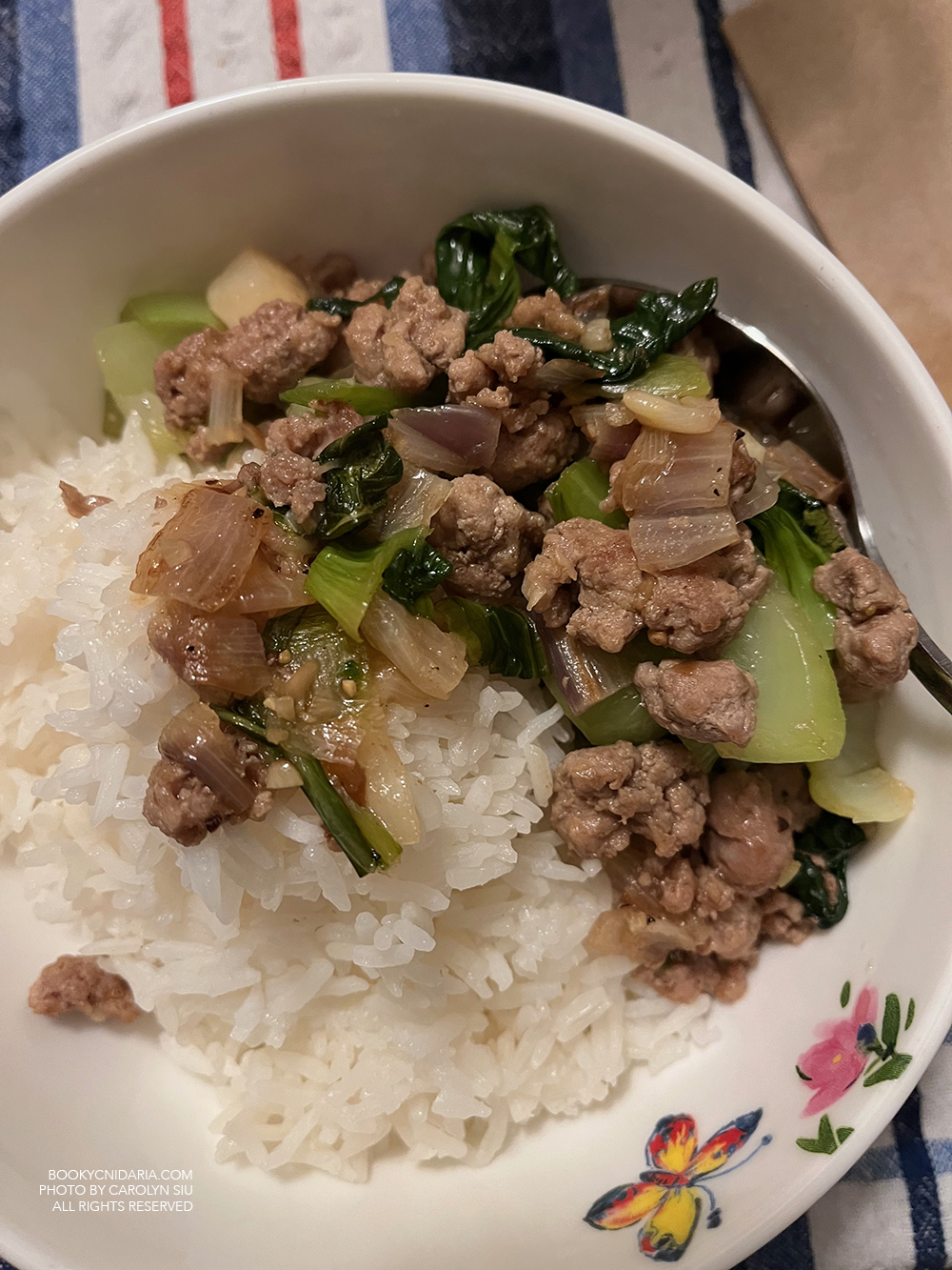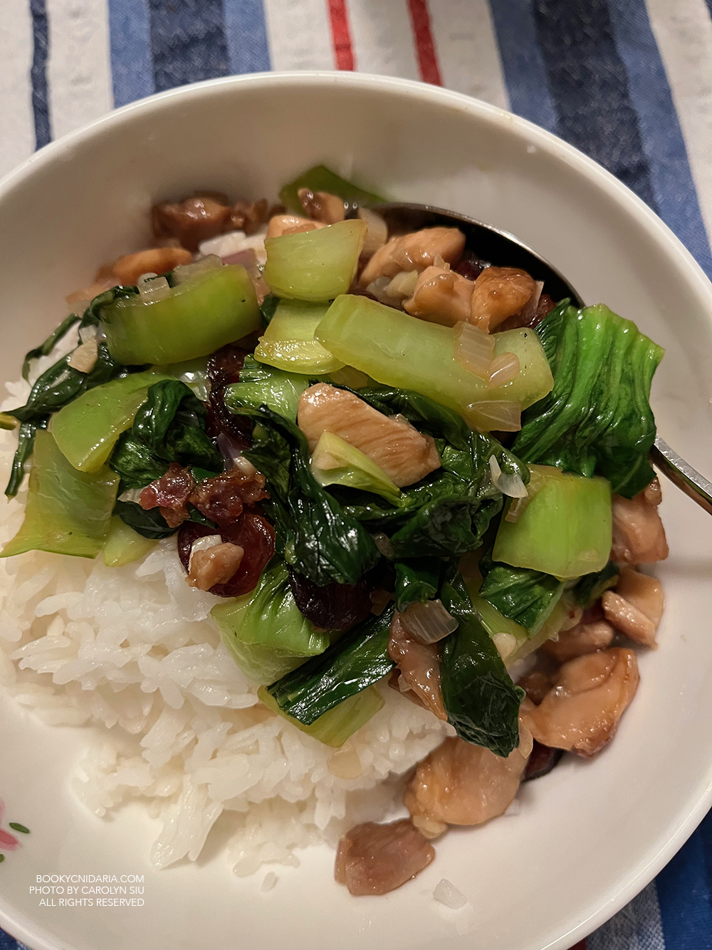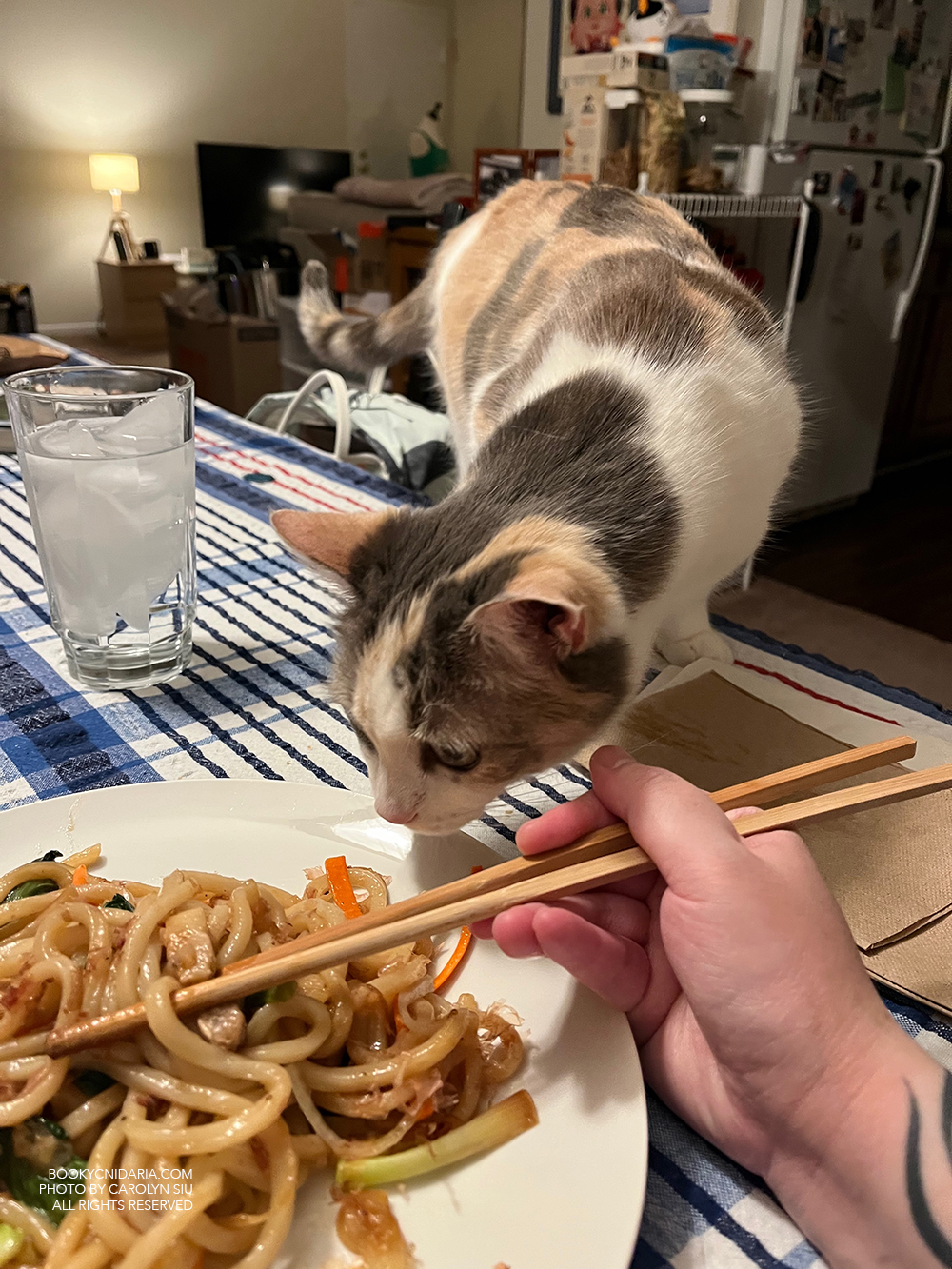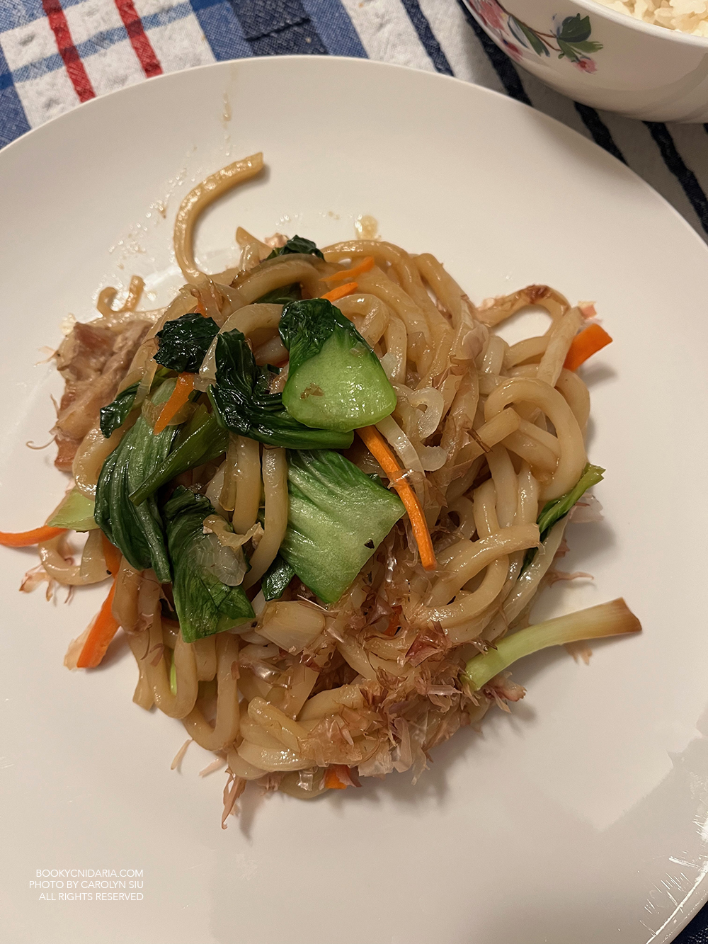 In order from left to right: stir-fried chicken with bok choy and lap cheong, made as a test run before the bday potluck; yaki udon, served with a little visitor, who probably smelled the bonito flakes on top; random late-night ramen with chili oil because I’m only human; and ginisang pechay, a Filipino bok choy dish of which I am extremely fond. Currently kicking myself for only making a half recipe because I finished the leftovers yesterday. I’m doing fairly well with my freezer contents, but I still have a handful of frozen pork baggies that need to get used up. I might have to toss the pork belly into another udon.