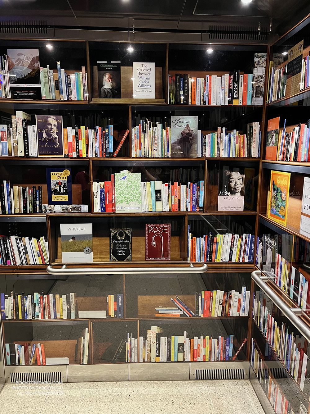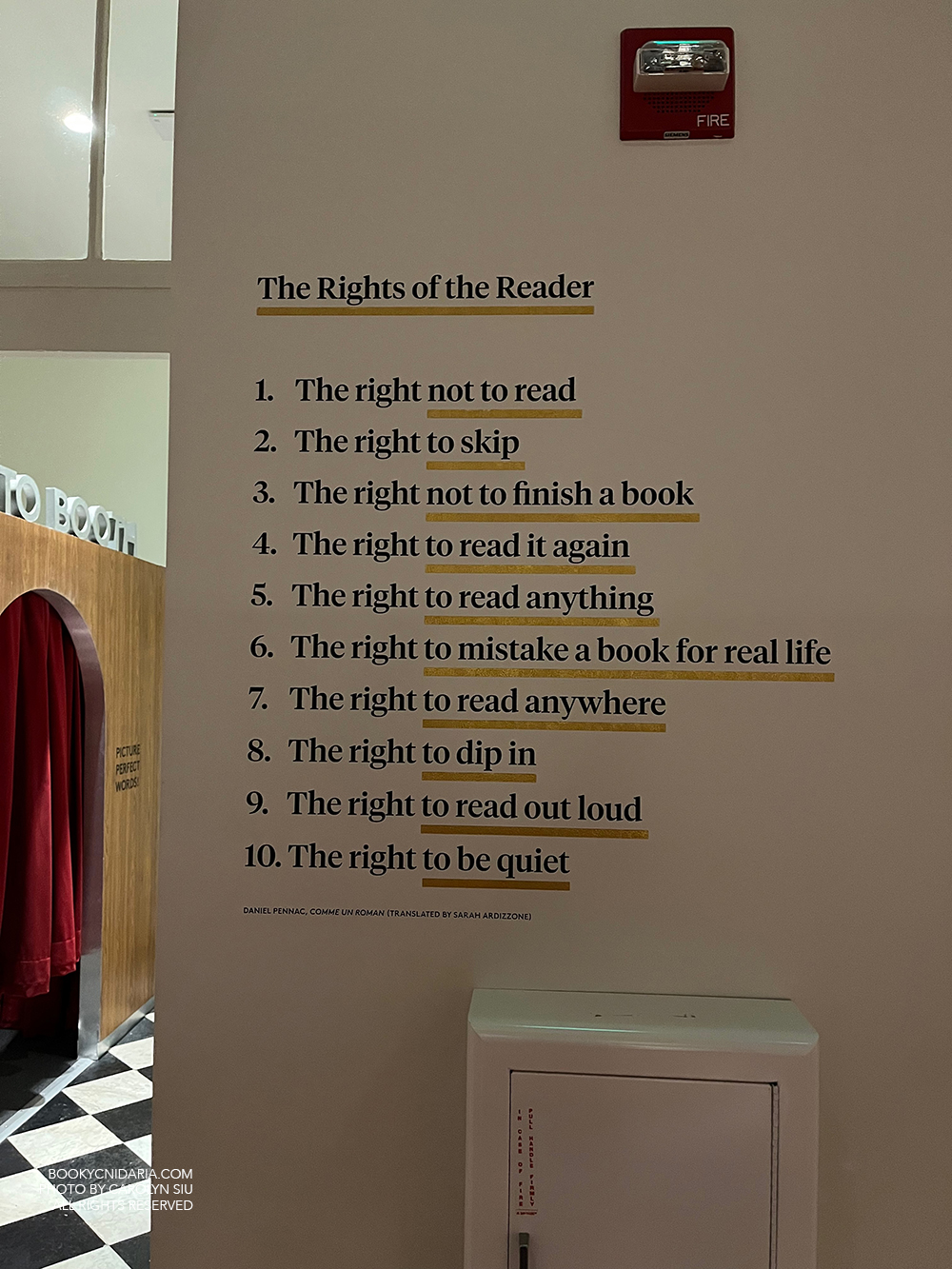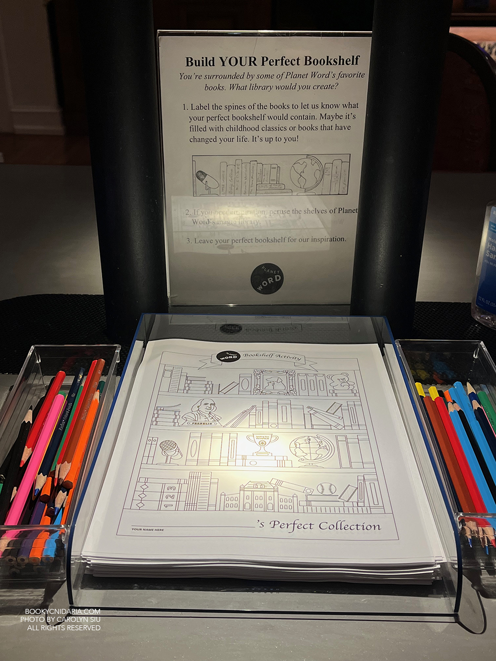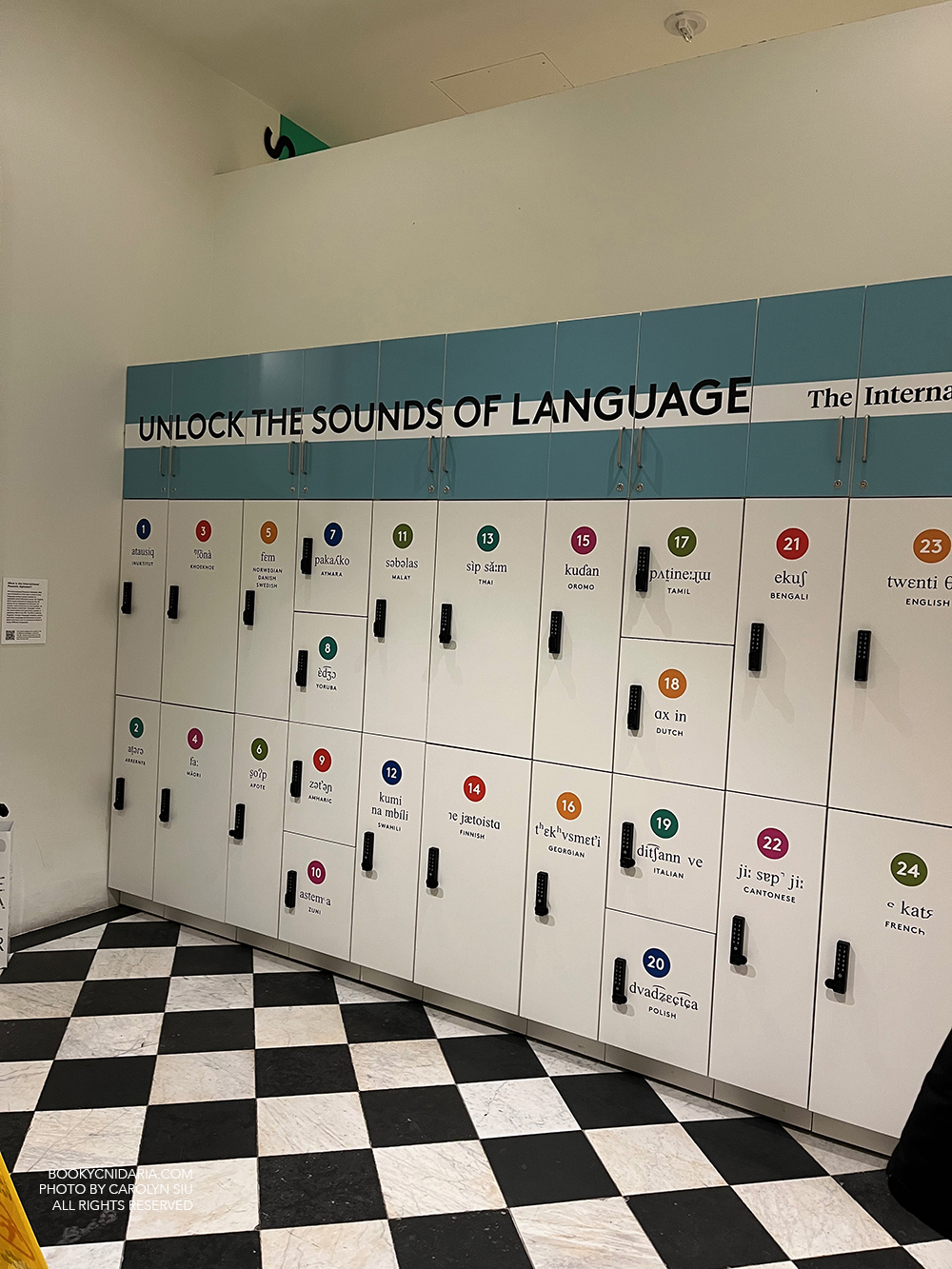 I had never heard of Planet Word before Heather told me about it, and now I am indignant that this place is not a household name. Planet Word is nothing more nor less than an independent museum at the historic Franklin School in DC, and it is AMAZING. From the short story dispenser in the lobby to the interactive language lectures to the karaoke room where they analyze the lyrics on the screen to the rude writings all over the bathroom walls, this place is a must-visit for anyone who loves words and anyone who wants to learn to love words. I was geeking out by the time we got on the elevator, whose walls were designed to look like bookcases.