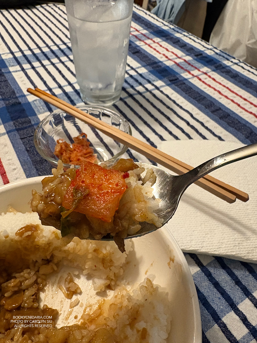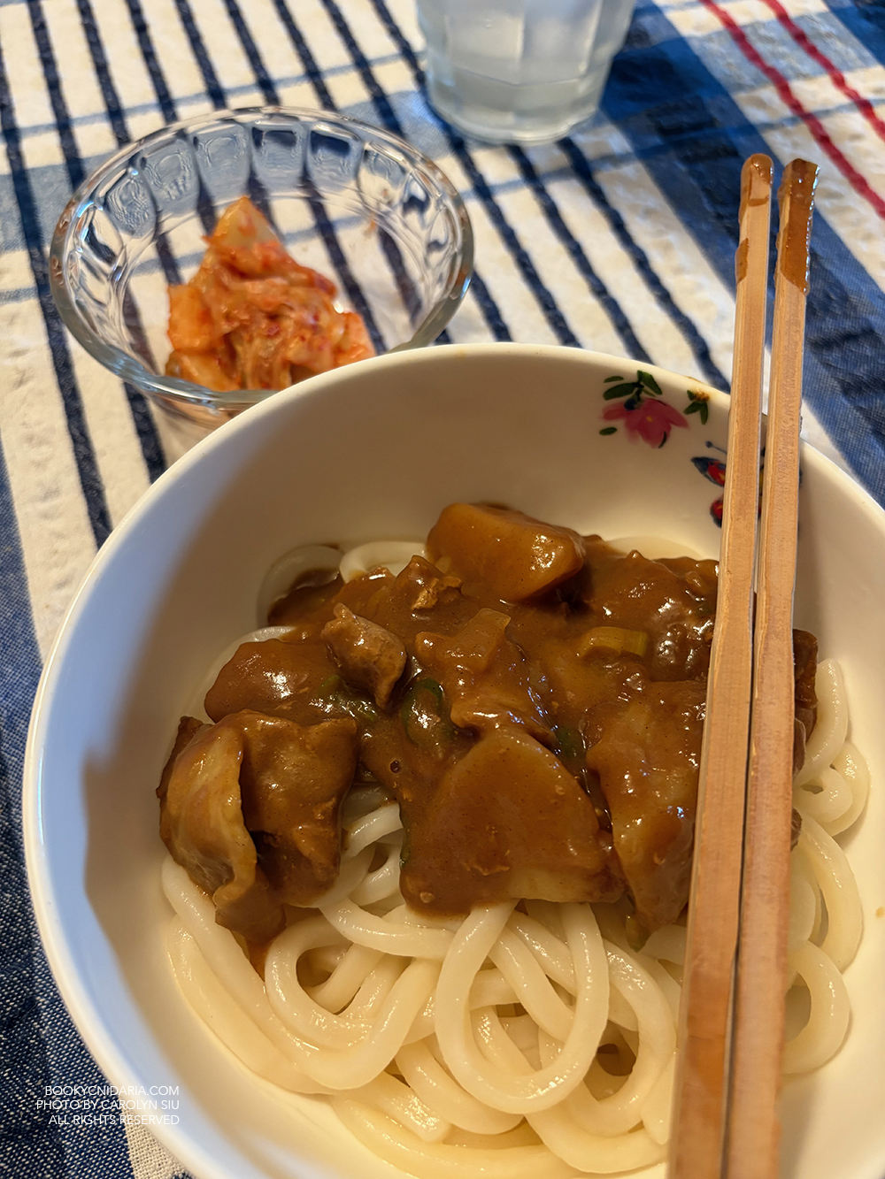 - Pork curry with rice and udon, and of course kimchi.