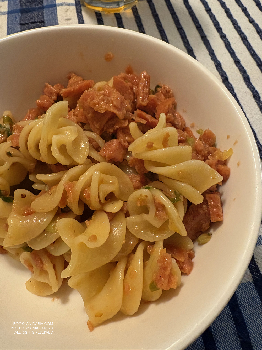 - Scallion and Spam pasta, made with my last can of KBBQ Spam. I didn’t love that Spam as much as I was hoping I would, but this was a good use for it.