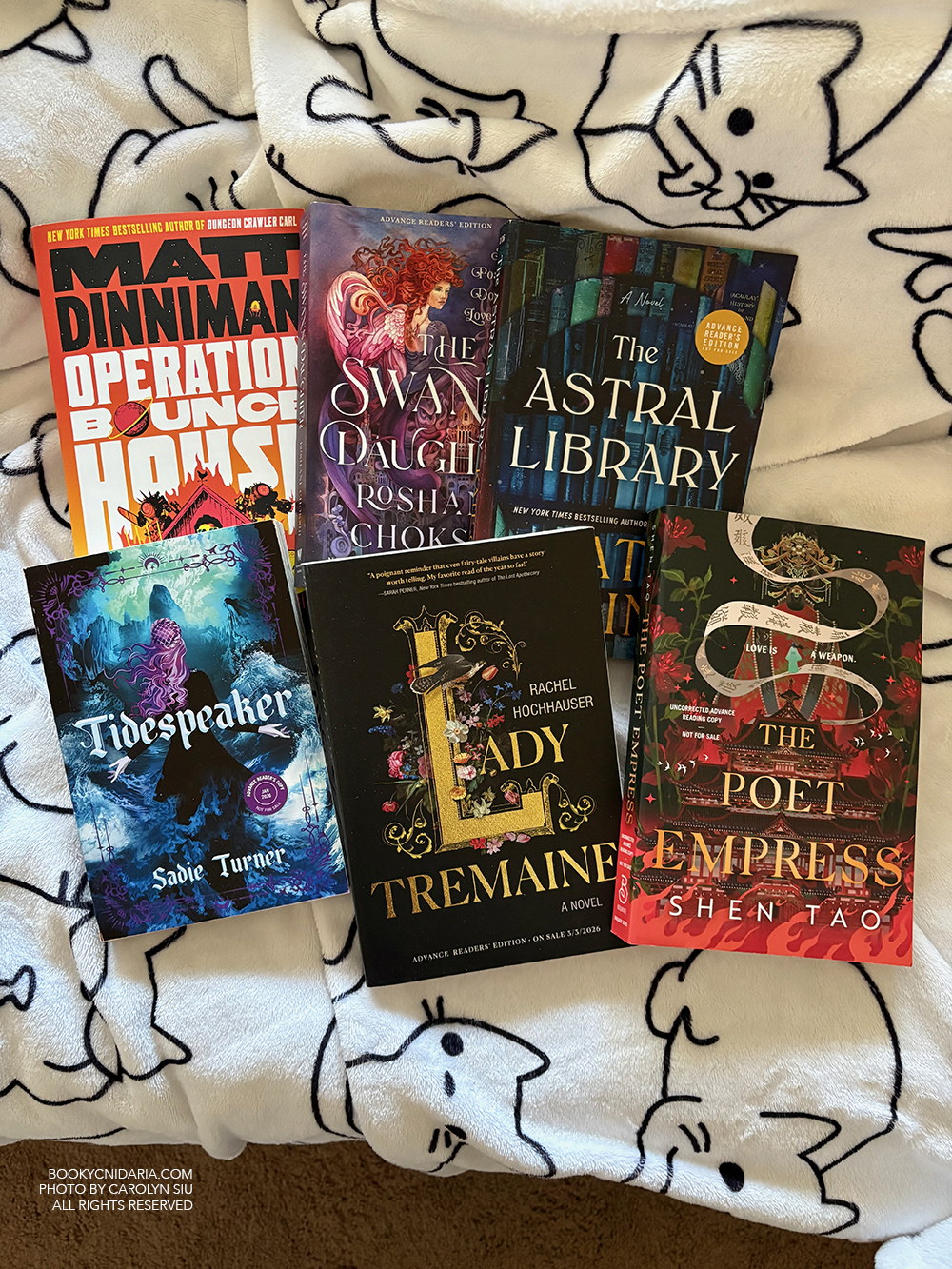 Work isn’t all bad. I love working at Barnes & Noble. I love books and I love being surrounded by books and I love talking to people about books, and BN fulfills all three. I might have brought shame on my ancestors the other day because I think I accidentally explained Dungeon Crawler Carl (Matt Dinniman) to somebody who had already read it, but that is what happens when you activate my unskippable dialogue. :’) Another benefit of what I sincerely hope will be a long career at BN (or at least last longer than a handful of months): free ARCs in the break room. I took full advantage last year, and this year I’m at it again. I particularly bless the coworker who told me about The Poet Empress (Shen Tao). I am looking forward to all of these.
