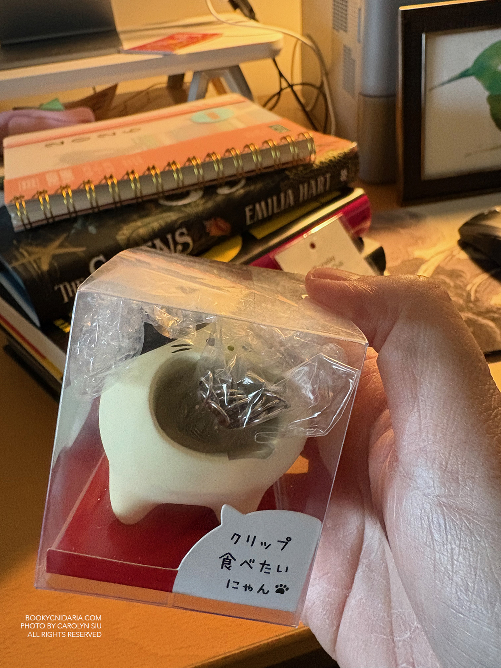 Last year I had the full power of my savings account behind me, and I ended up trading labor for books because I was not nearly as careful as I should’ve been. This year I don’t have that luxury, so I’ve instituted a new rule. If I see a book that I want and it wasn’t written by an auto-buy author, or it doesn’t belong to an auto-buy series, I have to download the free Kindle sample and read it before I start to think about buying it. This strategy has been extremely effective in Getting Me To Not Buy The Damn Book, and so far has prevented me from impulse-buying perhaps twenty books. If this sounds like an exaggeration, it is not. I now compulsively download Kindle samples. I have so many unread samples stacking up in my Kindle library instead of unread books stacking up on my living room floor next to overcrowded bookshelves. It’s a thing of beauty. I am sorely tempted by that gorgeous new edition of I Am a Cat (Sōseki Natsume), but I realized upon picking it up that it was quite a bit thinner than it’s supposed to be, and from there I learned that it is in fact only the first volume. I already have a copy including every volume, so I will have to admire this new one from afar. I am proud of how little I have managed to buy for myself this holiday season, aside from a few treats, and slightly shocked. As for that screaming paper clip cat, it looked so much like a yelling Circe that I had to buy it.