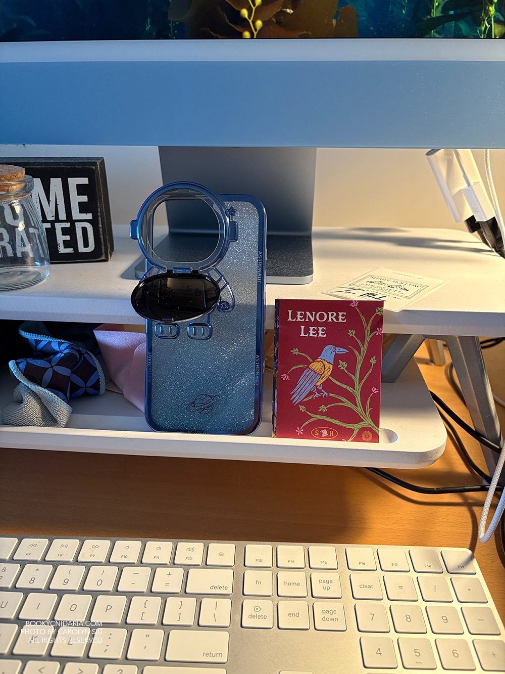 This is my new phone case I love it with all my heart. My customers bring me the darndest things at BN. Mostly it’s book titles I haven’t heard of, which I then download as free samples on my Kindle (have yet to read most of them, but anyway), but one woman came to the counter with the purple version of this case on her phone and I just – I mean, look at it. ;_; Anyway she let me take a picture of it and I ordered it in blue and now it’s never coming off, and I have already sold a completely different customer on it even though we obviously don’t carry Amazon products. I mostly love it. That flip-down visor is adorable, but it is also deeply annoying because it acts like sunglasses and tints your photos if you don’t take it off.