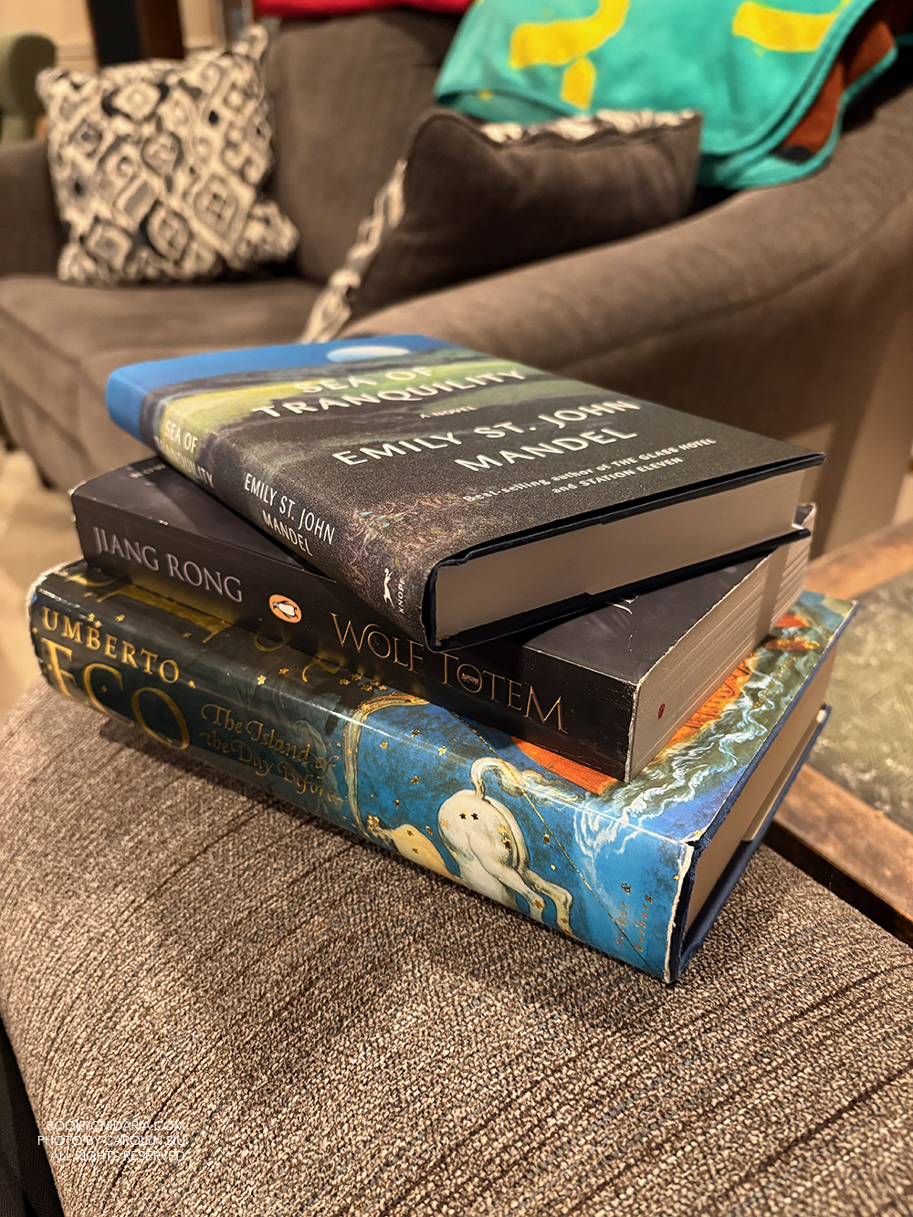 All of which is to say that reading was not a priority in December, or indeed at any point in the final quarter of the year, though some reading did take place during my work breaks. That being said, I did manage to fulfill my one surviving goal of finishing the Secret Shanghai series before the end of the year, which gave me five series completed for 2025, and I’m not displeased. I also reread Goblins & Greatcoats in preparation for Brigands & Breadknives, which – at this point in my Brigands read – seems to have been an excellent idea. Of course I still managed to go on a secondhand book-buying spree because I sold a box of books and I was feeling uppity, and also just look at that gorgeous Eco. I have read The Name of the Rose and remember very little about it, except that they somehow burn the monastery to the ground, but I had never heard of The Island of the Day Before. And I’ve gotta admit I’m nervous because Name of the Rose was hard to get through, but I had to have this book. I also decided the time was ripe to finally try Emily St. John Mandel, and Wolf Totem (Jiang Rong) was a totally random surprise find. Which, let’s face it, is the best kind of find to have in a bookstore.