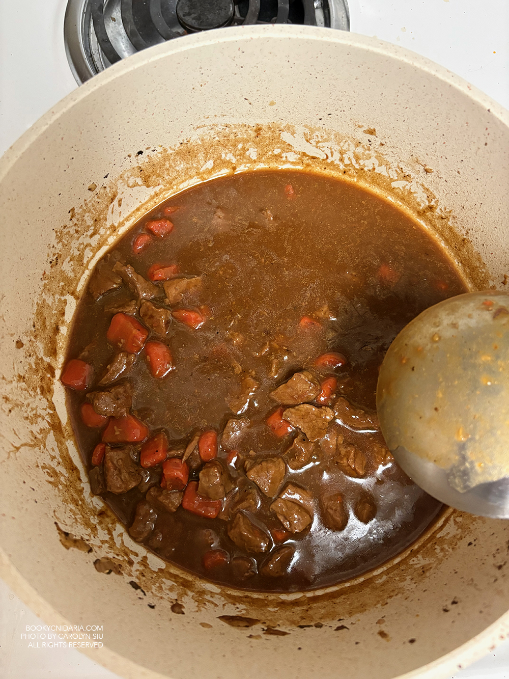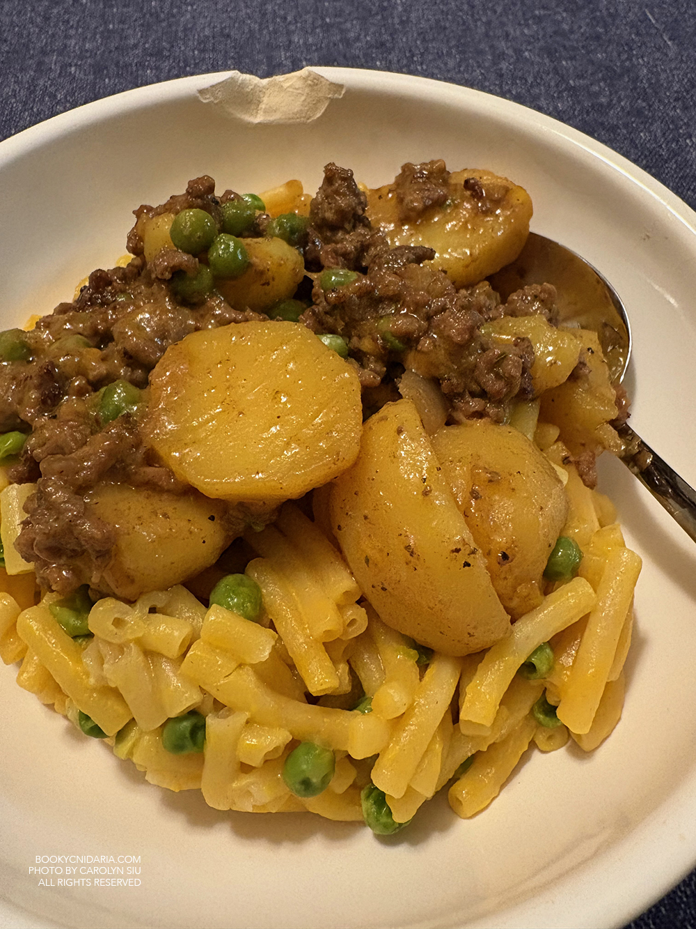 The highlight of this month was mashing together a couple of different recipes to create the perfect beef stew, which incidentally also works as a curry (Lori’s idea) if you drop in a block of Vermont’s finest. I grew up eating Golden, but Vermont is currently my favorite. This handily solves my craving for beef curry, and I will be making both the stew and the curry again. The stew is basically the ground beef stew I made back in October, just with stew meat instead of ground beef and cooked longer, and with the meat juices thrown back in with the vegetables (because those little assholes were steaming themselves dry, and I happened to have the meat juices within grabbing range). I can now say that I prefer it with the stew meat. In this iteration I didn’t add potatoes because I wanted to eat it with mashed potatoes and that seemed too redundant even for me, but potatoes will definitely be used when I make it again as a curry.