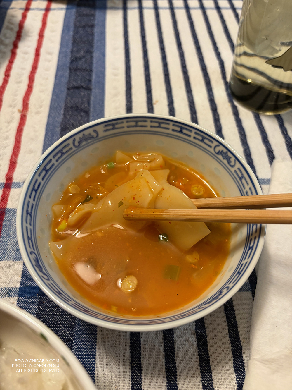 - Kimchi sujebi. Delicious. 10/10 will try to make from scratch. Still have one serving left in the fridge. Expired, naturally, because that’s how I roll.