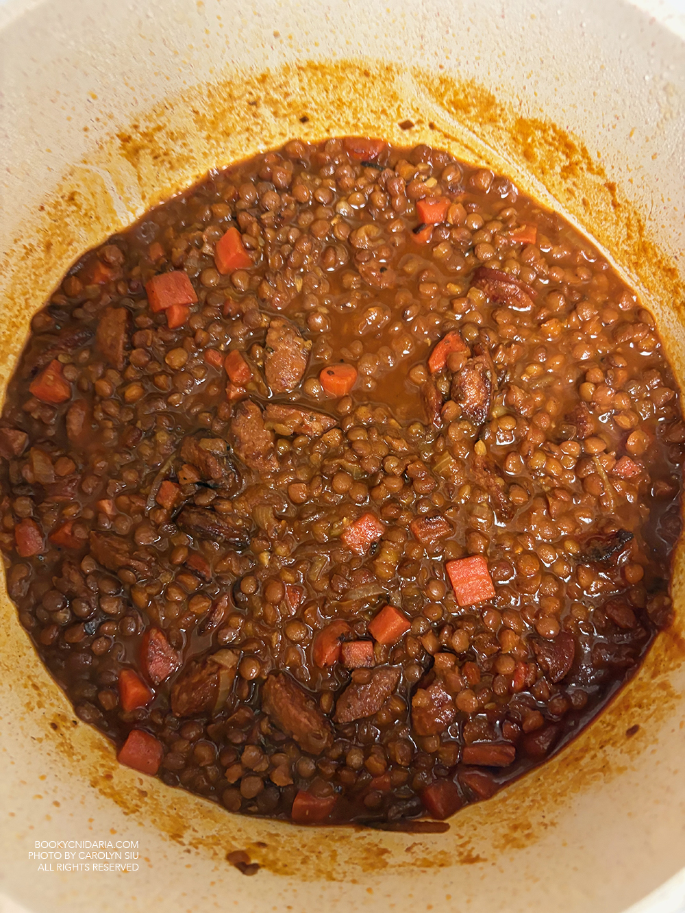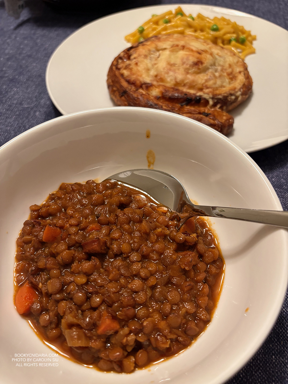 - Lentil soup with harissa?!?!?! Already plotting to make another pot tomorrow because I ate up the last of it on Monday. The recipe called for kielbasa, but I couldn’t find any at Wegmans (and was probably looking in the wrong spot) so substituted chorizo. It was delicious. Next up: trying the powdered harissa instead of the paste, because the recipe seems to call for the powder. I didn’t know that at the time I bought the paste but do not object to the opportunity to experiment.