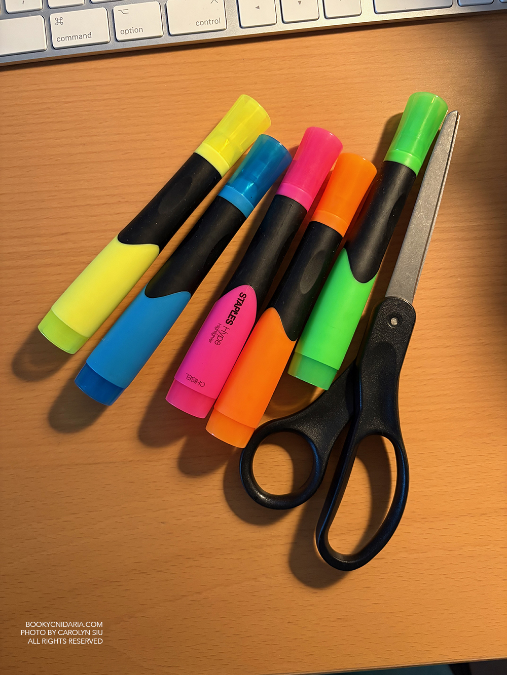 The weather’s been so up and down here lately. On Monday we got snow, and going into next week it’s supposed to be in the 60s and 70s. One could say the same about my life because I was on an even keel for a while, sort of, but then I got a couple of big problems dropped on my head over the last couple of weeks. One involved my car (and is now resolved) and the other is both sensitive and ongoing until I hear otherwise. The second one necessitated the purchase of new highlighters. I bet they were hoping I wouldn’t have the receipts, but I do and those receipts came highlighted.