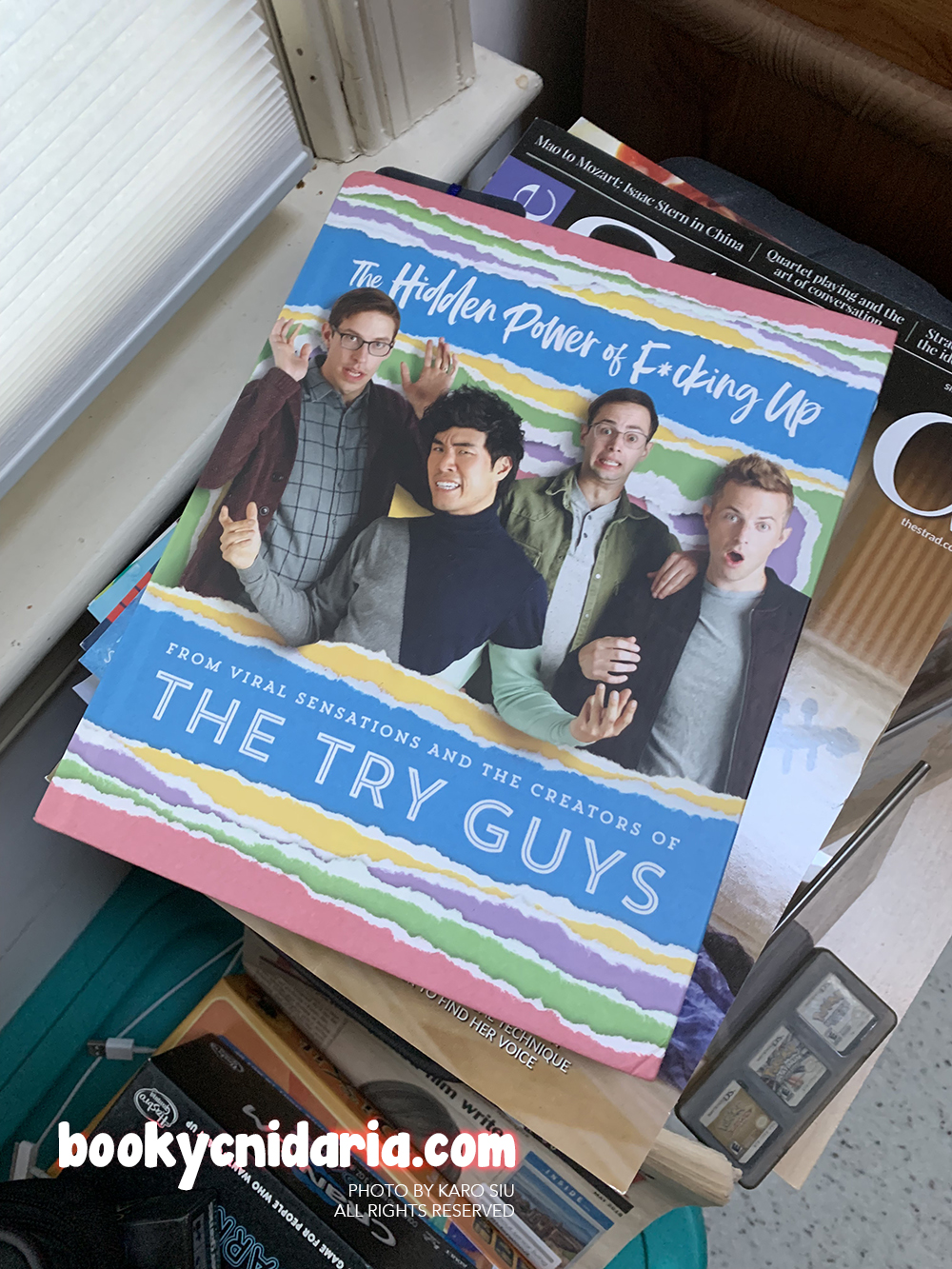 I am a hardcore Tryceratops and go out of my way for everything and anything relating to the Try Guys, up to and including watching all their videos, supporting them on Patreon, donating to things that they care about (but only if I care about them too, I’m not a complete sucker), listening to their podcast even though I never listen to anybody else’s podcasts, and going to their show even though it’s on a weekday and I almost never go out on weekdays, all of which means that I also had to preorder their book, both hardcopy and audio. (Yes, you, judging me. I don’t care.) I never thought I could love four strange internet men so much, but that was before I saw them doing ballet and asking little girls for fashion advice.