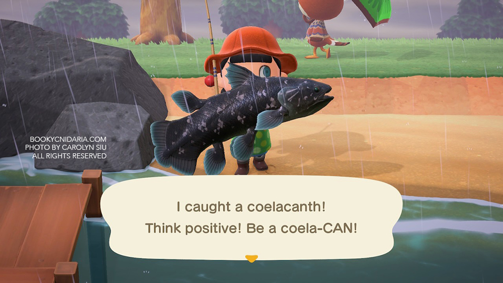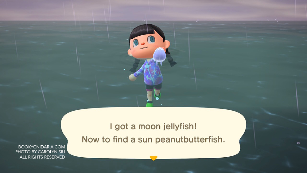 Today was particularly good, because I caught a coelacanth and my first-ever moon jellyfish. I’m very excited. I love all jellyfish, but moon jellyfish are my special favorites.