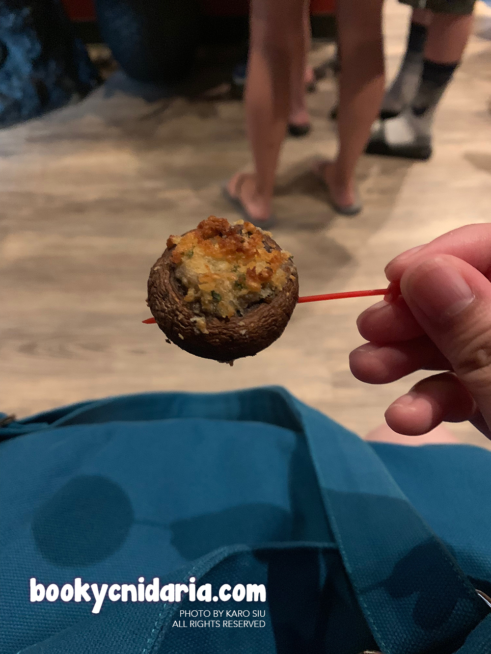 The wait was about an hour but while we were waiting one of the chefs came around with a platter of stuffed mushrooms and handed out samples and omg they were so good.