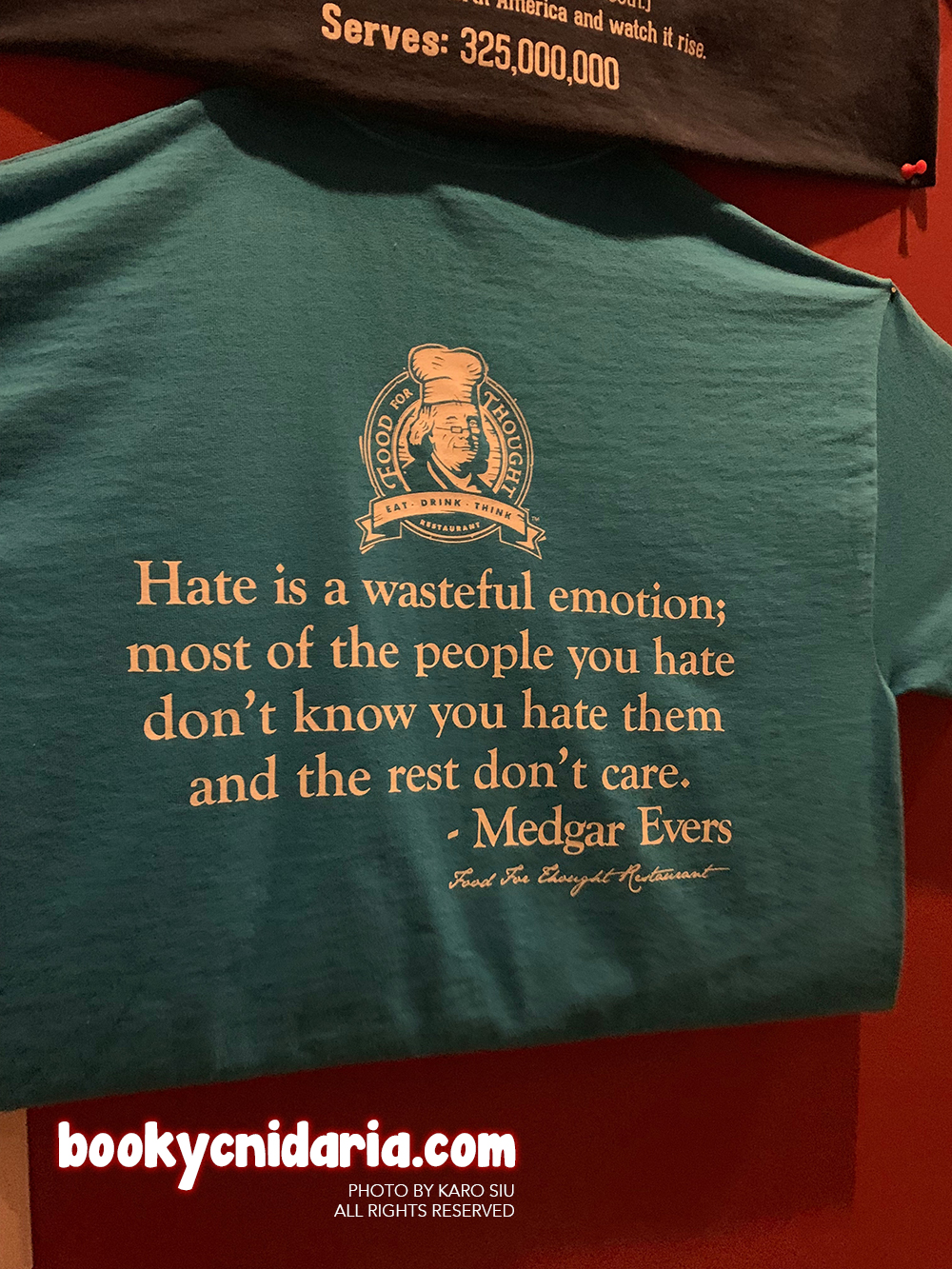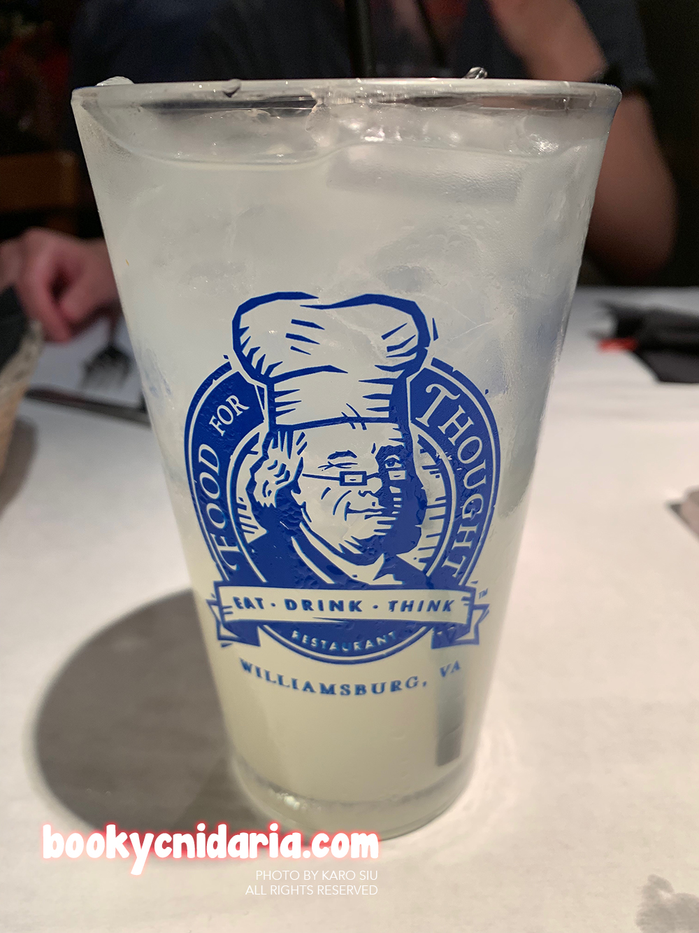 In our original itinerary we were supposed to be shopping at this point but it was hot af so we hung out in the room for a bit and then went to dinner at a Benjamin Franklin-themed restaurant called Food for Thought. I’m not even joking.