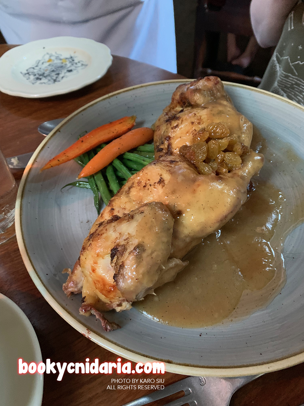 Heather’s citrus-roasted game hen, which came with butternut squash potato mash, pan jus, and golden raisin agrodulce: