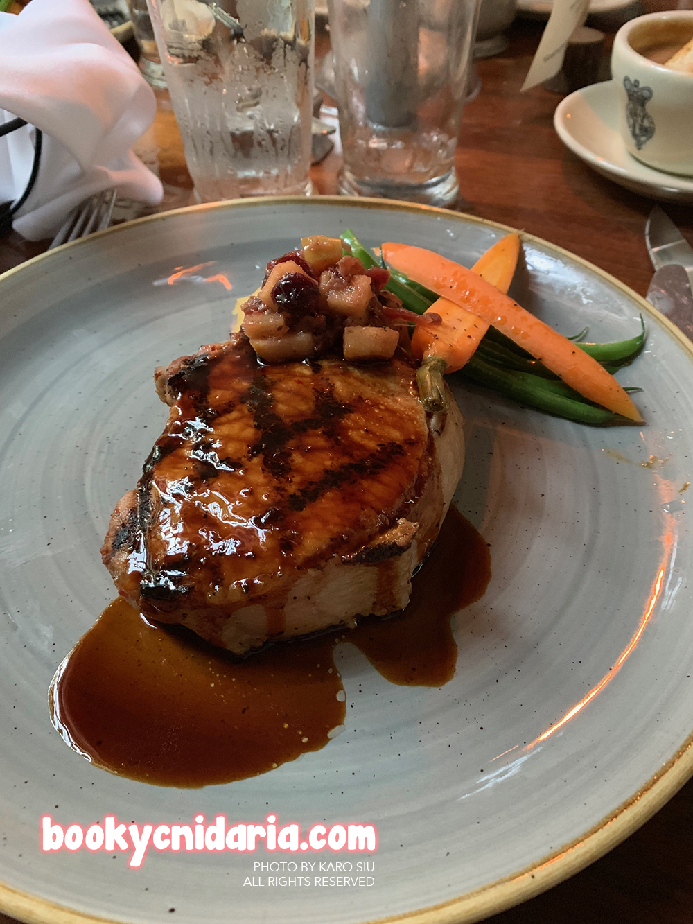 The rest of us ordered the same thing because we’re boring. We all got the “chop of shoat,” which was a whiskey-maple brined pork chop with butternut squash-potato mash, tart apple compote, and whiskey pork jus. Can you tell I’m just typing up what’s on the menu pics on their Yelp page? Part of my pork chop made it home but the butternut squash mash did not because yummm :3