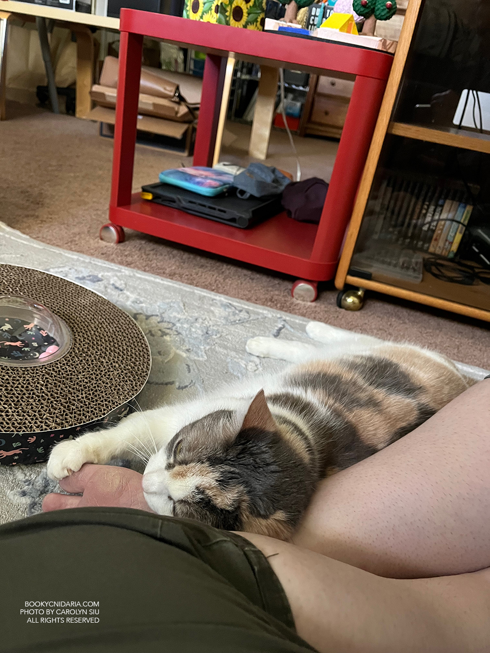 - Hanging out with the cat