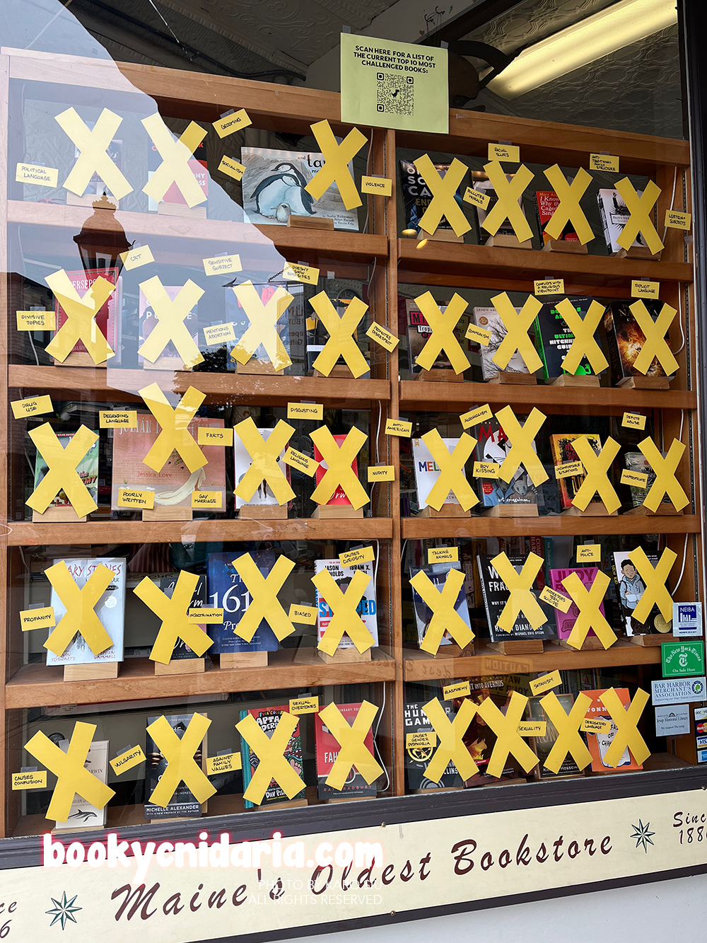 After saying we were going to spend all our time going to independent bookstores, we finally visited Sherman’s, which had this amazing display showcasing challenged books and the reasons people like to complain about them.