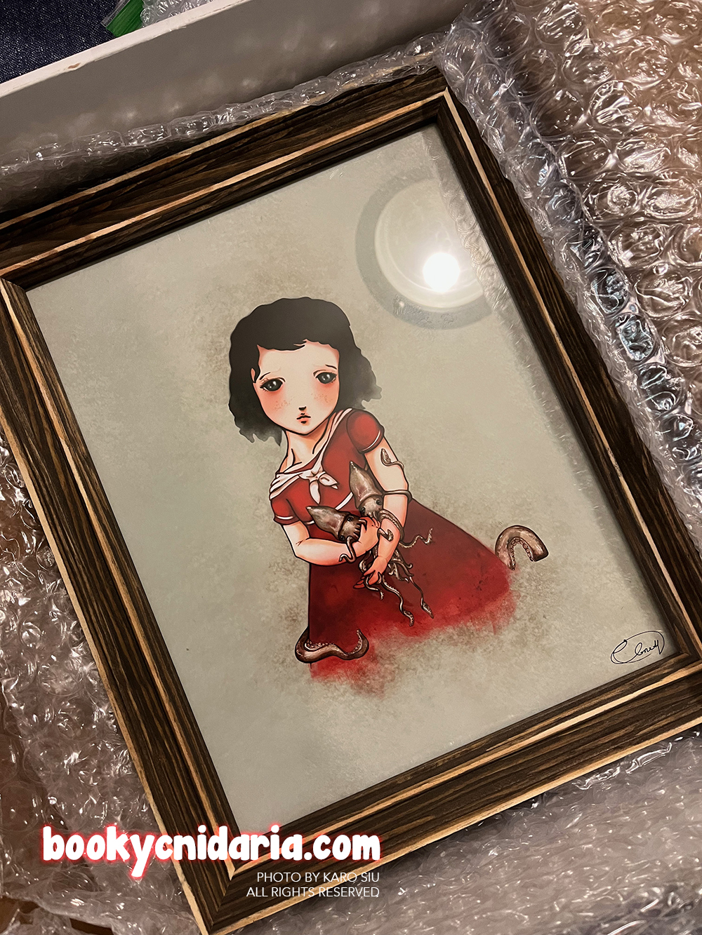 There were at least three Eloise prints that caught my eye, but I managed to limit myself to my favorite one, titled “I’ll make the ocean my home.” Fortunately I had just enough sense left to realize I would not be able to fit a framed print into my suitcase, so I had it shipped to me instead, and it arrived just in time to make it into this post. I love this print, and I can’t wait to find a good home for her. 😀