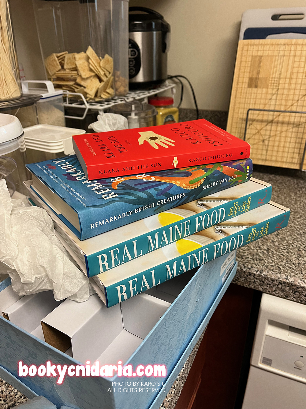 Depressing shows aside, I thought I’d wrap up my trip report with my loot! I didn’t quite capture everything, but this is definitely most of it. I might actually be most excited about the Luke’s Lobster cookbook, which I have two copies of because I got one for my parents. We went into Luke’s Lobster to pick up lunch for the schooner ride and were not expecting to find cookbooks, but I’m glad I spotted them. I’m also excited about Remarkably Bright Creatures, recommended to me by my mom. That was another surprise find: I happened to see it at Sherman’s, and the rest is now history.