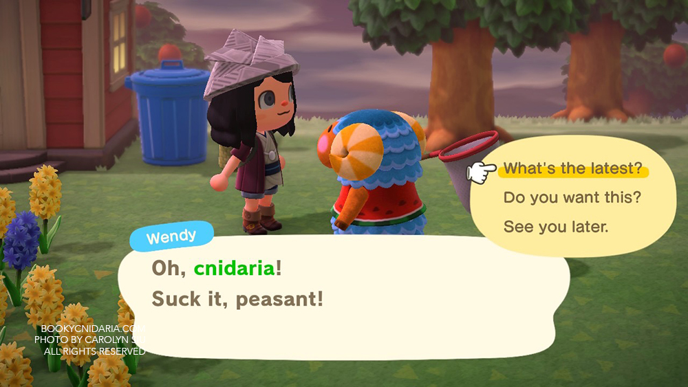 My planet island Jelly Cove is so beautiful in the spring. Yes I know it’s not real but the world is going in a direction that is making me hardcore wish I could hop into a dodo-operated plane and fly to my little island, so for these purposes it’s real enough. I am actually looking forward to summer, because I understand that’s shark-catching season. It’ll be great. In the meantime, there are several trees right outside my windows, so every time I turn my head I can pretend I really am living the island spring life. It’s going to be a warm couple of weeks if my weather app has anything to say about it, but so far I’ve been able to keep my AC off and my windows open because my apartment is north-facing. I love open windows; they add to the general I-wish-I-lived-in-Animal-Crossing vibe.