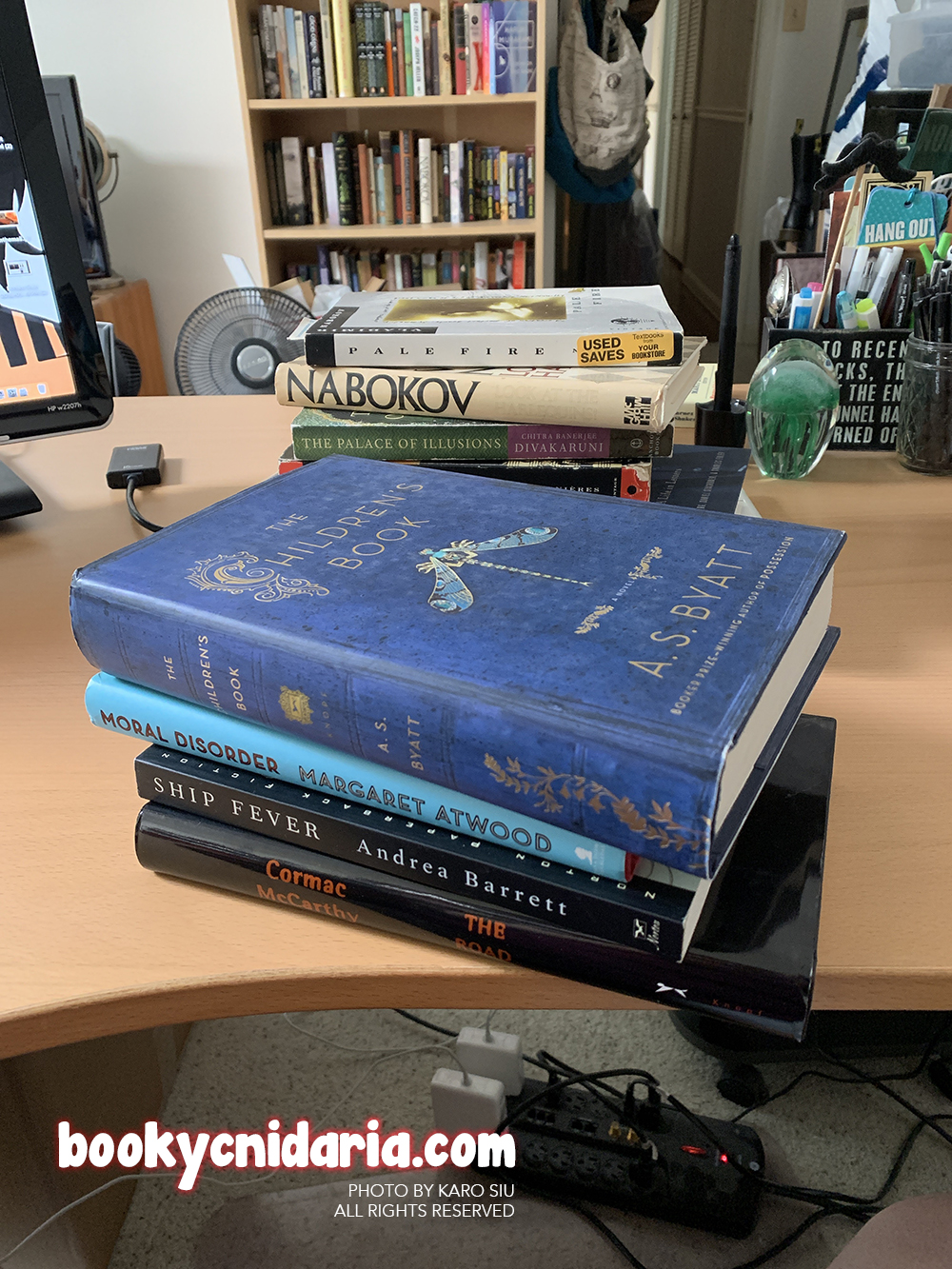 Since it was (1) Memorial Day weekend and (2) just generally a lucky day for buying books, I hit up two used bookstores today and I swear I was only looking for Moral Disorder but I somehow came home with nine books and since I seem to be confessing all my sins I might as well mention that I cracked and read Ghost Bride even though I said I wasn’t going to until I’d finished Monte Cristo oh gawd don’t judge me.